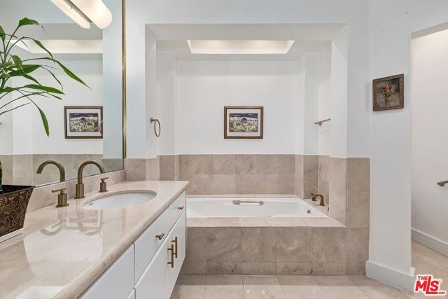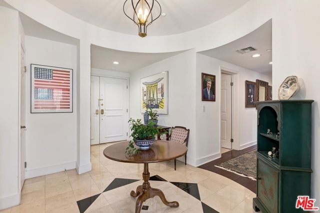 This rare spacious, sunlit, quiet, and upgraded one-level 3BD rear northwest corner unit in a lovely 14-unit low-rise boutique complex is complemented by an open entertainer's plan with high ceilings, marble and wood floors, and French doors. Rotunda-style entry flows to the Great Room with sizable living and dining spaces, fireplace, bar, and wide peek-a-boo view balcony. Fabulous large chef's kitchen with top stainless appliances, oversized breakfast area, and separate balcony. Big sleek powder room. Generous primary suite with walk-in and luxurious bathroom. Two other bedrooms (one with a separate balcony) share a bath. 2 car side x side gated subterranean parking as well as solid guest parking. Building features a meeting room, gym, sauna, big rooftop view patio, elegant lobby, a compact communal storage room in the garage, and EQ insurance. With a high WalkScore and moments to all of the finest amenities in the Westside and beyond, this unit is a truly tremendous treasure on a prime peaceful road.
