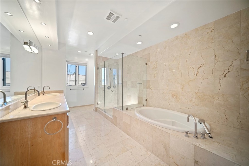 Experience the luxurious 3-bedroom condo at Beverly Hills. Prime location, walking distance to Beverly Blvd, Rodeo Drive, near top-notch restaurants, shopping and more. This beautiful front facing condo is filled with light floor-to-ceiling French Door, new paint, new carpet, features hardwood floors, custom built cabinetry in dining and kitchen, recessed lighting. The primary suite, on a separate floor, offers enhanced privacy with a generous walk-in closet. 3 side by side parking space also feature with storage . Feels like a house with access to Beverly Hills School District. Don't miss this opportunity for your dream home.