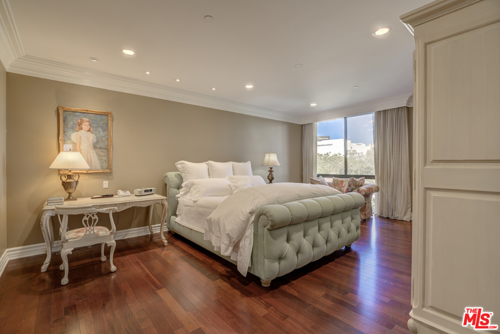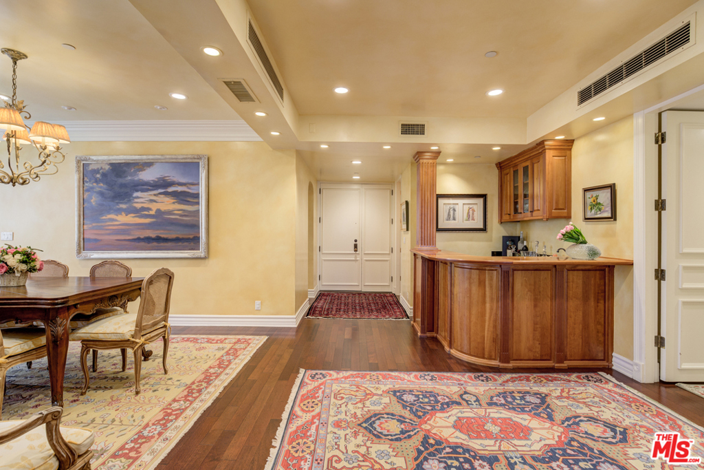 Perfection awaits you in this totally upgraded Condo. The unit is filled with custom cabinetry and floor-to-ceiling windows that bring sparkling natural light throughout while providing gorgeous BH city views. Enjoy your morning coffee or a nighttime cocktail on a lovely outdoor balcony, or in your spacious dining room. Formal LR showcases an exquisite fireplace. Some of the renovated details include a cook's kitchen with 36" Wolf range and double Wolf ovens, a SubZero Fridge, and a built-in Miele coffee machine. Entertain your guests with a stunning built-in wet bar. The luxurious primary bedroom is a 5-star retreat, including a spa-like bathtub, steam shower, dual vanities, and dual water closets. Guest bedroom with ensuite bathroom provides hotel living. The third bedroom can be used as an office or gym. M-F doorman, gated entry w/ 2 side by side parking spots. The chicest lobby in BH! PRIME location for foodies and fashionistas, minutes away from the best of everything.