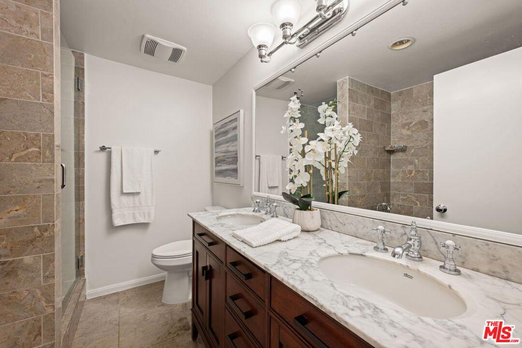 All offers due in by Tuesday December 2 at 6 p.m. Gorgeous condo that has been used as a 3 bedroom plus 2 1/2 baths. It has a very versatile floor plan with a spacious private primary suite and 2 large walk in closets. The kitchen has beautiful granite counter tops, tons of white cabinets with ample storage, and was updated with all new appliances recently. The bathrooms have Carrara marble vanities with double sinks in the primary, marble floors and wall tiles, all are renovated. The living room has a beautiful marble fireplace, wainscoting , crown molding and grand detailing. A charming office alcove that provides a show case for books and objects of art. A mirrored bar for entertaining and additional sitting at the counter top with serving from the kitchen. The dining area has pretty greenery views and has room to seat a large party. The enclosed den can be a third bedroom with a half bath. The secondary bedroom is generous in size and has closets galore. The primary suite is quite large and has it's own vanity area, big walk in closet and en suite bath with double sinks. There are hardwood floors through out all bedrooms and entertaining rooms. The side by side washer and dryer are inside the unit. A top of the line HVAC system was installed recently with a Nest thermostat control. There are two parking spaces, a recreation room, gym, sauna, storage unit and pool as well. The location is superb and is just minutes to world class shopping, dining , and the soon to be completed Metro.