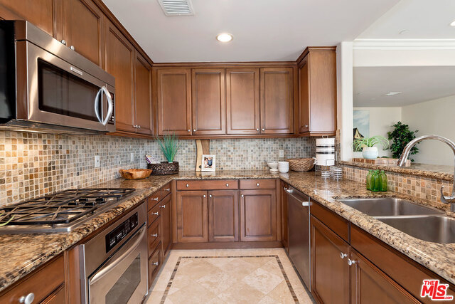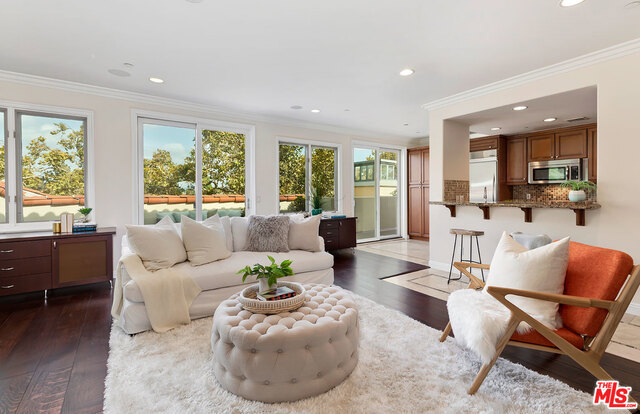A gorgeous Beverly Hills 3 bedroom 2.5 bathroom penthouse showcases an expansive terrace perfect for entertaining and enjoying the city light and tree top views. Light and bright with beautiful hardwood floors and a great layout. This open kitchen has stainless steel appliances and granite counters. The spacious master bedroom features a fireplace, large walk-in closet and access to patio. 3 side by side garage parking spaces in a secure garage. Located next to Arnaz Park near restaurants and shops.