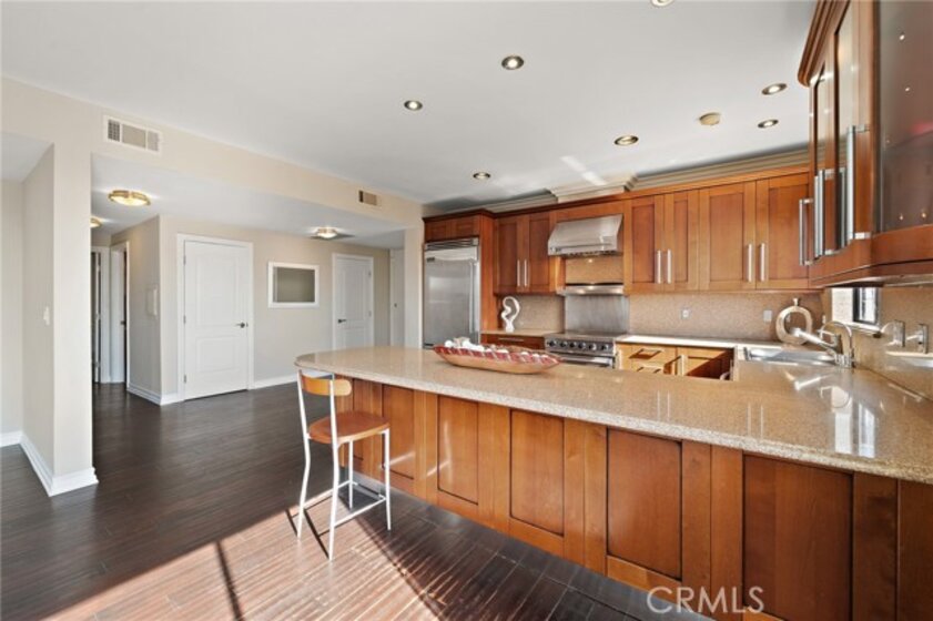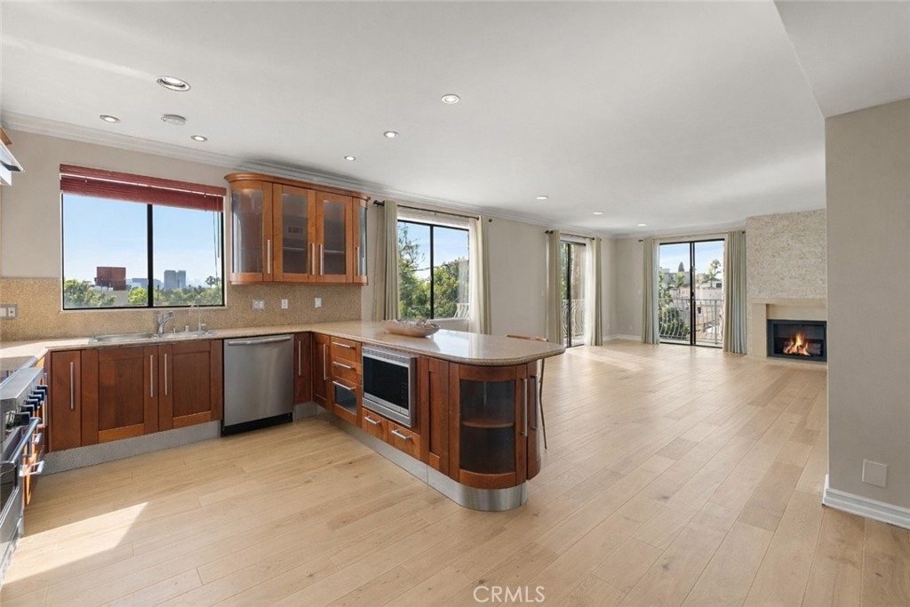 Top Floor Corner Residence, walking distance from Rodeo Dr. 2 bedrooms, 2 full baths, and 1,640 SF of living space, highlighted by a wraparound corner balcony and private in-unit laundry. Seller will pay up to $10,000 for buyer's closing costs. VIEWS of Downtown from your balcony, kitchen and dining space. More VIEWS of Century City sky rises and palm trees from your West and South facing balcony. Lavish double door entry into the unit where you’ll be covered in light shining through the wall of West facing windows. Morning sunrises over coffee or breakfast in your Viking-equipped kitchen, framed with rich wood cabinetry. High ceilings in every room, this residence stands apart as the crown jewel of the building. Master bedroom has enough space for a California King bed, additional seating space, office desk, and more. Huge walk in closet with built ins and the sizable en-suite bathroom includes a double vanity and a hot tub. The guest bedroom has an advantageous size and a closet with a built in organizer. Second bathroom also features a large soaking tub. Very low HOA for the area under $400/month. Located within the prestigious Beverly Hills School District right in between Beverly Vista Middle School and Horace Mann Elementary, moments from Rodeo Drive, upscale dining, shopping, and renowned art and entertainment venues.