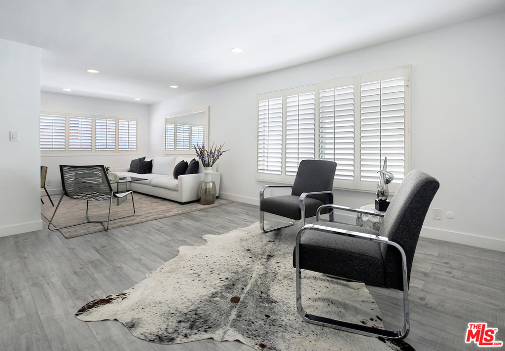 Spectacular- Beverly Hills Penthouse, totally updated one bedroom, one and a half bath with den. Very spacious light and bright unit located on the top floor with great flow, immaculate designer finishes and dramatic details throughout. A pied--terre that is the epitome of chic and sophistication. Gourmet kitchen features, granite countertops, contemporary white custom cabinetry, and a European washer- dryer combo. Enjoy the generous living and dining room, with rich flooring and plantation shutters that leads to an exceptionally large den/ office or convert into a second bedroom. Sensational large prime bedroom suite with gorgeous, renovated bath with dual sinks and rich espresso cabinetry + separate deep soaking tub + separate steam shower. Luxurious full guest bath with pedestal sink cabinet. Smaller, well maintained building with low HOA. Great Beverly Hills location - bring your most discerning buyers. Ready to move in all you need is your toothbrush.