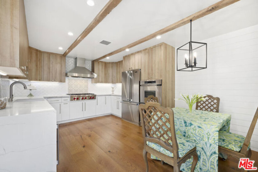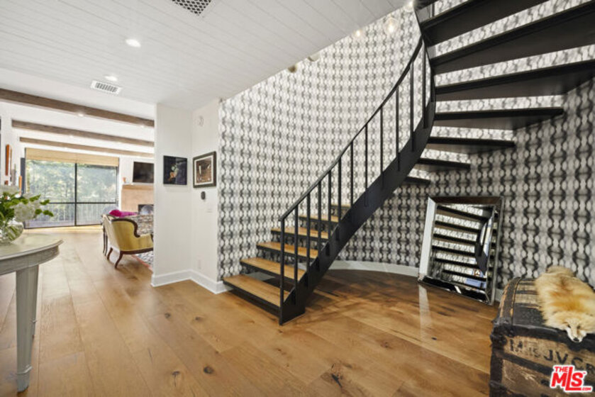Rare offering in the heart of Beverly Hills full-service living with VALET parking and exceptional amenities. Enter through a formal foyer featuring a dramatic circular staircase leading to a beautifully remodeled residence, designed with meticulous attention to detail and sophisticated high-end finishes. This spacious two-bedroom plus separate den, two-and-a-half-bathroom condominium offers elegant living with new hardwood floors throughout. The expansive living area opens to a large private patio, perfect for entertaining or relaxing in a tranquil outdoor setting. The chef's kitchen features premium appliances, abundant storage, and a bright breakfast area. Upstairs you are welcomed by a coffee bar to your primary bedroom with walk in closet, vanity area and spa like bathroom. Second bedroom with newly remodeled en suite bath. Residents enjoy 24-hour doorman and valet service, a resort-style pool, and a state-of-the-art fitness center. The building has recently completed a comprehensive plumbing replacement, ensuring peace of mind for years to come. Experience comfort, style, and convenience all within moments of world-class dining, shopping, and entertainment in Beverly Hills.