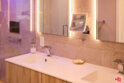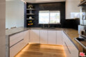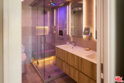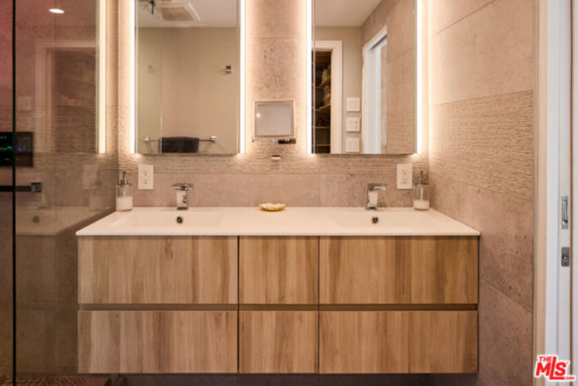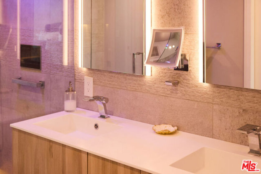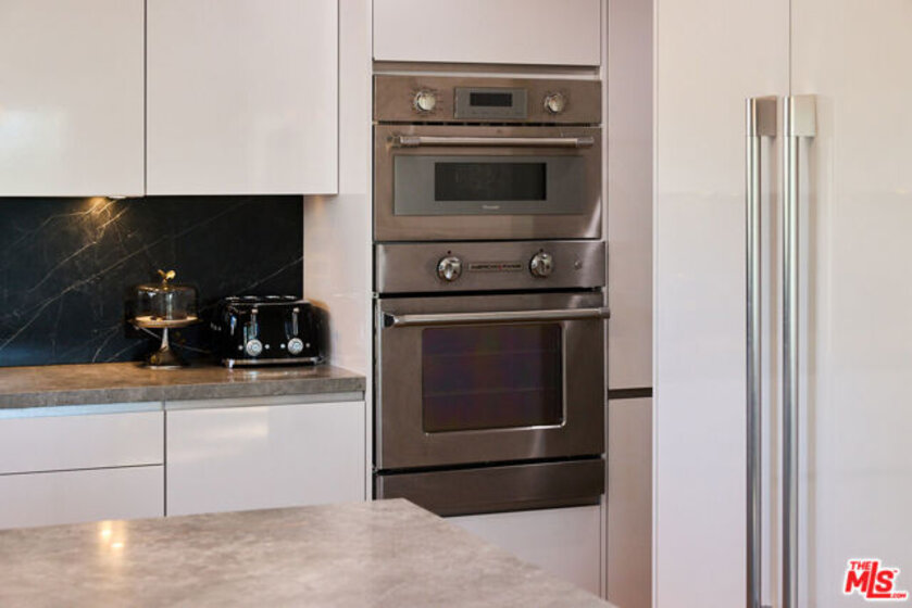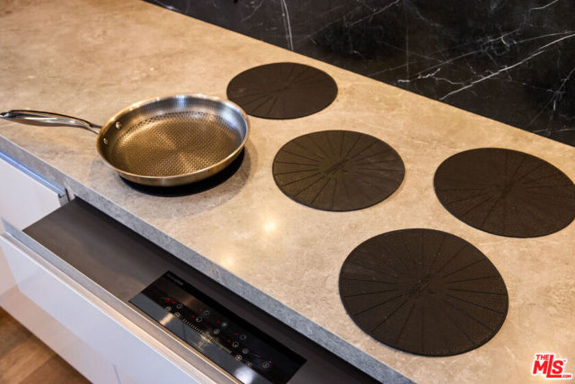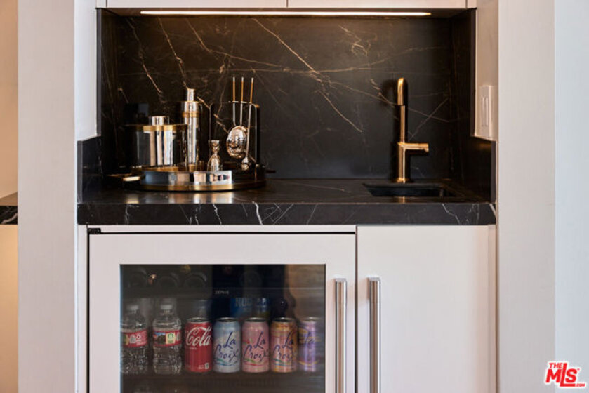 Experience a masterclass in modern luxury at 221 S Gale Dr #403. This meticulously reimagined penthouse underwent a complete down-to-the-studs renovation completed in 2024, creating the only legitimate 3-bedroom, 3-bathroom floor plan in the building. Every detail has been thoughtfully upgraded, from the all-new electrical and plumbing systems to the high-efficiency 3.5-ton HVAC with Nest control. The architectural centerpiece is a dramatic living room featuring 18-foot ceilings and a floor-to-ceiling porcelain feature wall with an integrated electric fireplace and a 65-inch TV cutout. The space is complemented by a porcelain wet bar with a wine and beverage fridge, ideal for sophisticated entertaining. The designer kitchen represents the pinnacle of culinary technology, headlined by a state-of-the-art Invisacook invisible induction cooktop set beneath seamless porcelain countertops and custom Porcelanosa cabinetry. Professional-grade features include a premium appliance suite by Signature, American Standard, and Miele, as well as Brizo touch-control fixtures, a dedicated pot filler, and an instant-hot water system with integrated filtration.The primary suite serves as a true sanctuary, boasting dual walk-in closets and a spa-like bath with a steam shower featuring touch-panel controls, integrated music, and mood lighting. High-end finishes continue throughout with Porcelanosa luxury flooring, Lutron app-controlled lighting, and motorized blackout shades. Indoor-outdoor living is seamless with new sliding glass doors leading to a first-floor patio and a private second-floor rooftop deck. Upstairs, a rare 6' x 9' storage room provides exceptional utility. Both first-floor bathrooms include Toto bidets with heated seats. Situated in a secure building offering a heated pool, spa, and tandem parking for two vehicles, this home is moments away from the Beverly Hills tennis courts and La Cienega Park. Experience exceptional style and value just steps from world-class shopping and dining in the heart of Beverly Hills.