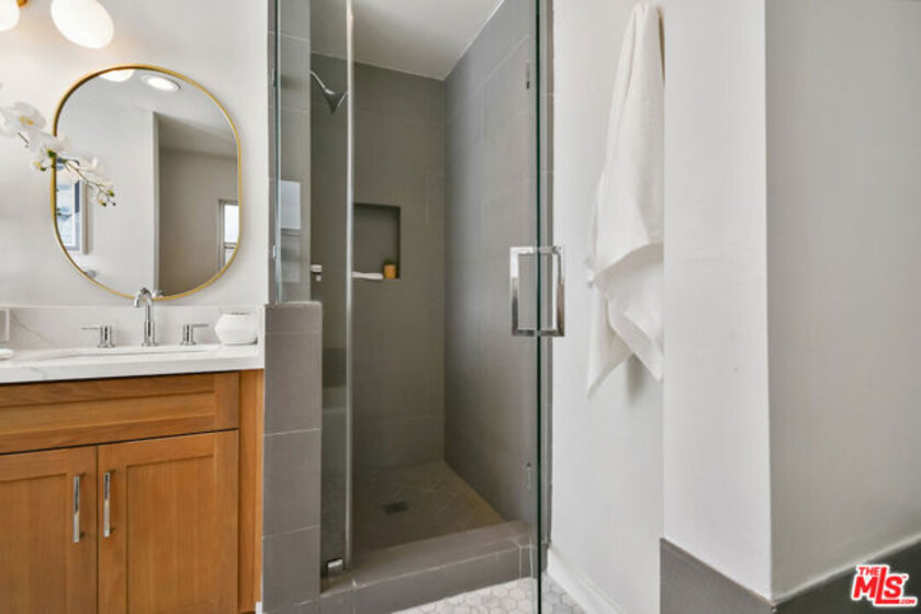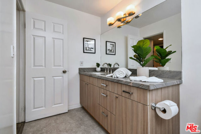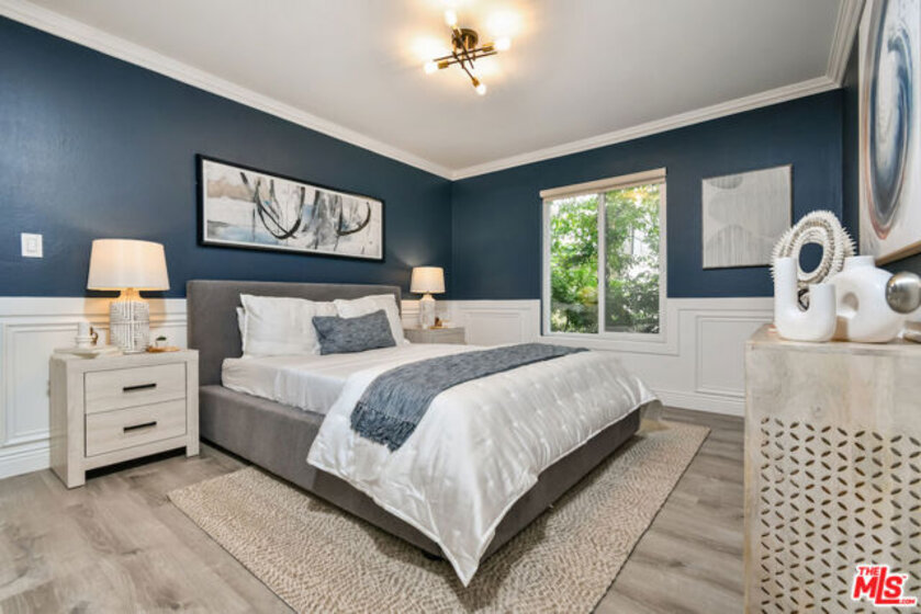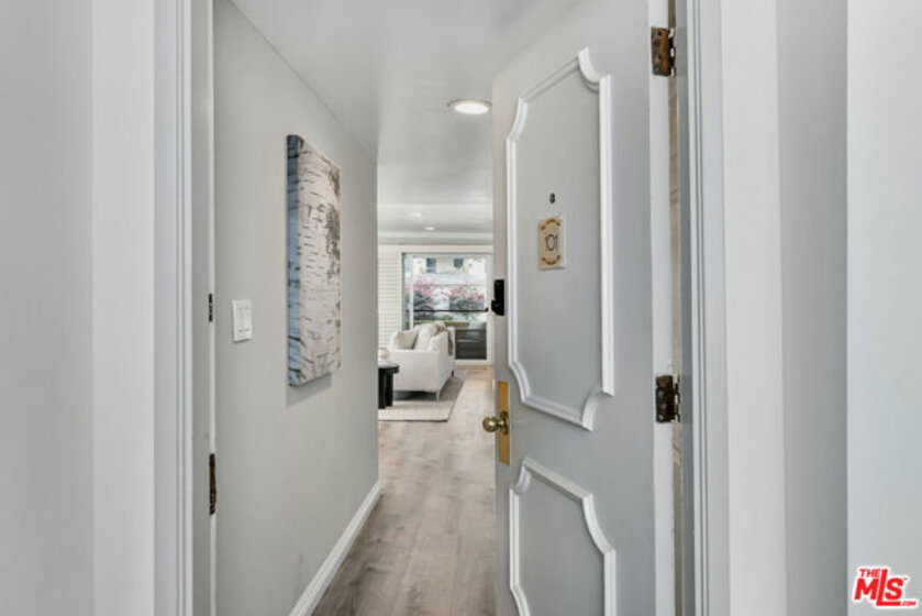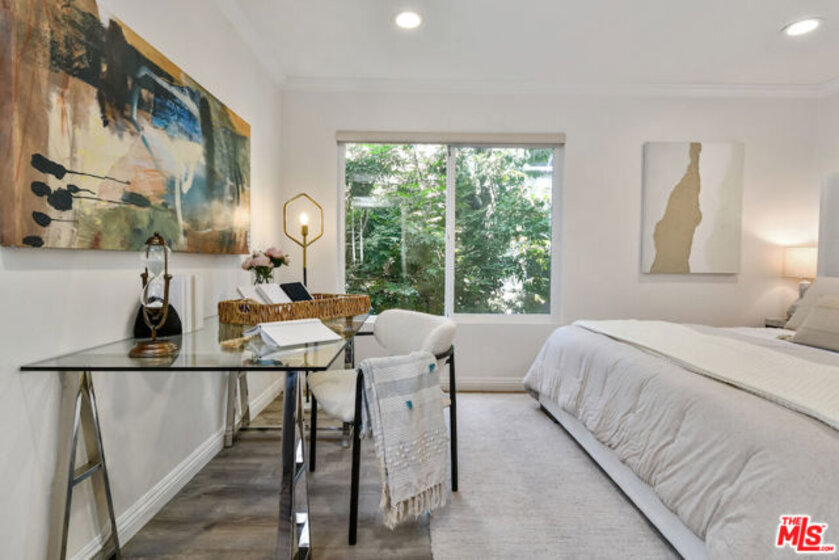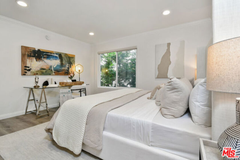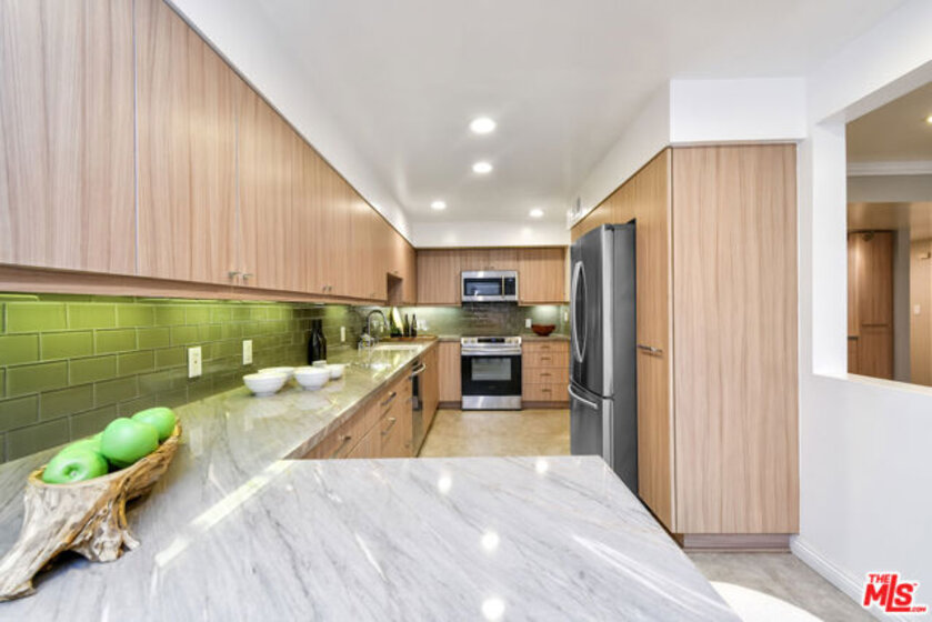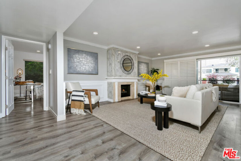 New Price! Absolutely turnkey and beautifully renovated, this single-level, front corner condo is the one you've been waiting for. With a smart, open-concept layout connecting the living room, dining area, and kitchen, it's an entertainer's dream. The inviting living room is anchored by a stylish fireplace, dry bar, and access to a private, east-facing patio; the perfect spot for morning coffee or quiet evenings. Enjoy peaceful views from every window. The cook's kitchen provides stainless steel appliances, abundant warm tone cabinetry and extensive countertops allowing your culinary adventures come to life. Opposite the kitchen, you'll find two spacious bedrooms and two full bathrooms. The primary suite features a walk-in closet and a newly updated bathroom with dual sinks and separate tub and shower. Both bedrooms offer large windows overlooking sun-dappled greenery bringing in gorgeous, filtered light throughout the day. Additional highlights include an in-unit laundry room, no shared walls, abundant storage, parking for two cars in a secure, gated garage and a controlled-access lobby. HOA earthquake insurance for 2025 has been prepaid by Seller. Located within the highly rated Beverly Hills School District and just moments from premier dining, shopping, La Cienega Park, Beverly Hills Tennis & Pickleball, Restaurant Row, LACMA, The Academy Museum and David Geffen Theater. A truly special home in an unbeatable location.