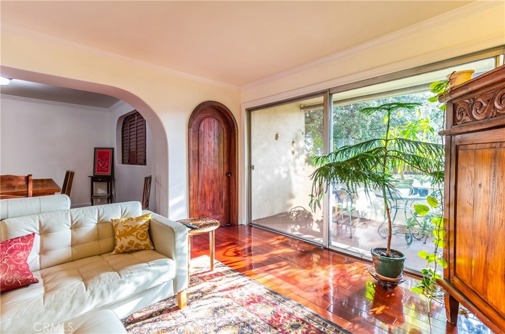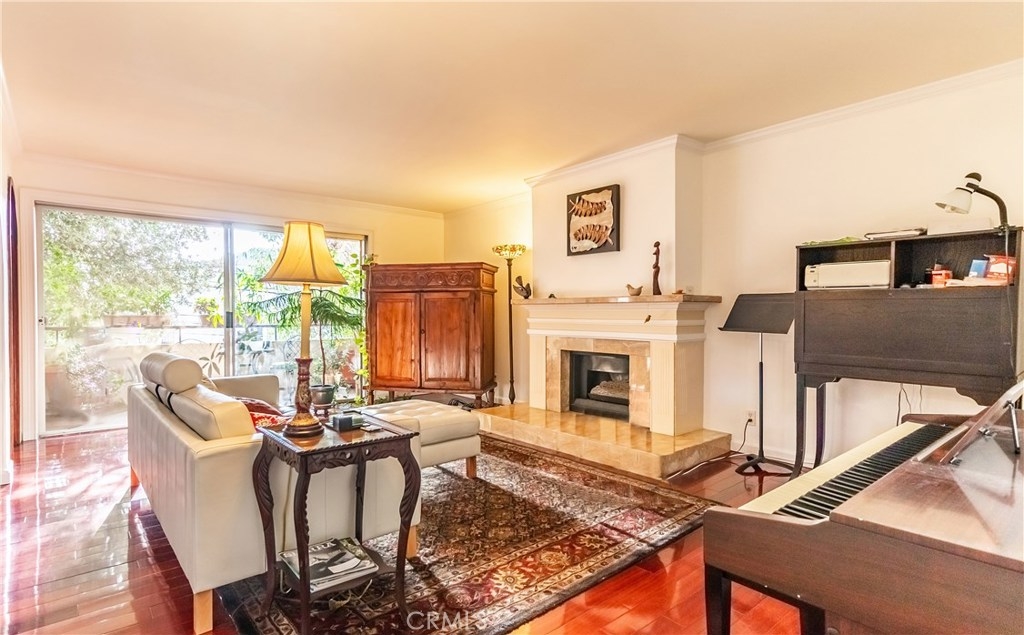 Stylish 2 bedroom/2 bath corner unit condo just South of Wilshire/La Cienega in Beverly Hills. Contemporary 12 unit building. This attractive second floor unit has a unique Spanish bungalow vibe. Featuring curved archways, teak hardwood floors, Central A/C, flat ceilings with recessed lighting and crown moldings, oversized kitchen and eating area. Separate dining room, gas fireplace with marble mantle, private laundry room in unit, plantation shutters and a large private patio. Convertible den currently being used as 3rd bedroom. HOA includes Earthquake insurance, water, 2 car parking spaces and additional storage area in garage. Beverly Hills school district, security building and elevator. Close to Beverly Center, world famous restaurants, public transportation, and LACAM. SO MUCH MORE...Time to move up to TOWER!