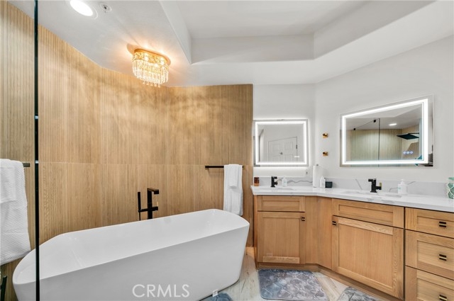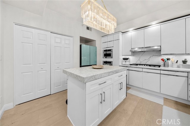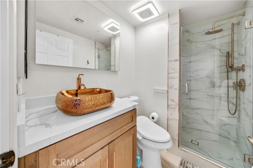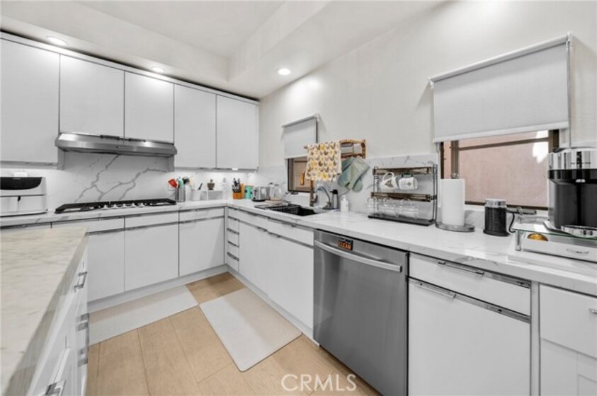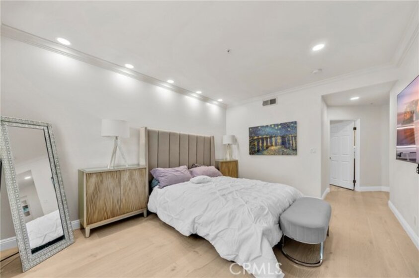 Absolute Luxury & Bespoke Design: Crystal Chandeliers & Spa inspired decor, all in the Beverly Hills School System Elegance, class, and absolute luxury define this rare, beautifully upgraded condo. This residence offers the highly coveted benefit of access to the awesome Beverly Hills School System, coupled with finishes that are truly unique. A Culinary Showcase: The open floor plan is highlighted by stunning fixtures and finishes. The spacious, chef-inspired kitchen features perimeter countertops and a spectacular marble counter top on the central island. High-end appliance brands include a Samsung Refrigerator and built-in KitchenAid Microwave and Oven. Casting a dramatic glow over the kitchen and formal dining area are exquisite Gold crystal chandeliers. Ultimate Spa Sanctuary: The large primary suite is spacious and inviting, offering a dedicated retreat that includes a spacious walk-in closet. The en-suite is where this home truly elevates the experience, and is an escape into luxury. The newly renovated master bathroom is a spectacular retreat featuring a sleek two-tone champagne and matte black spa design. Overhead, a matching Gold crystal chandelier adds a touch of glamour. This bath is centered around a beautiful free-standing soaking tub, and with a top-of-the-line Toto toilet—no detail has been spared. Even the guest spaces give a custom feel. The guest bathroom is finished with striking fixtures, including a chic rose gold vessel sink and matching rose gold full bath accessories, complete with an elegant Toto toilet. Convenience and Value: Ultimate convenience is ensured with a new Samsung washer and dryer included in the sale. Parking is superb: the secured underground garage not only offers 2 dedicated resident spaces but also features multiple guest parking spaces, gated storage, and includes your own private dedicated EV charger. Centrally located with close proximity to restaurant row, walk trails, tennis courts, and a park directly across the street; it is a meticulously curated lifestyle ready for immediate occupancy. Key Features Integrated: Beverly Hills School System High-End Appliances (Samsung Fridge/W&D, KitchenAid Microwave/Oven) Marble Counter Tops on Island Gold Crystal Chandeliers (Kitchen, Dining, Master Bath), Electronic Blinds Master Bath: Two-Tone Champagne/Matte Black, Free-Standing Tub, Toto Toilet, Electronic Bidets. Guest Bath: Rose Gold Vessel Sink & Accessories, Toto Toilet.