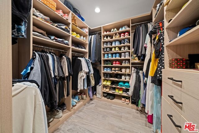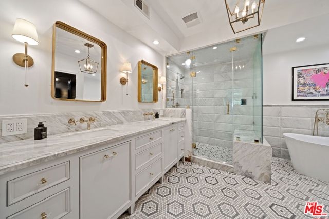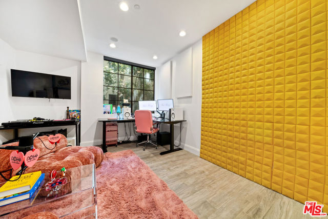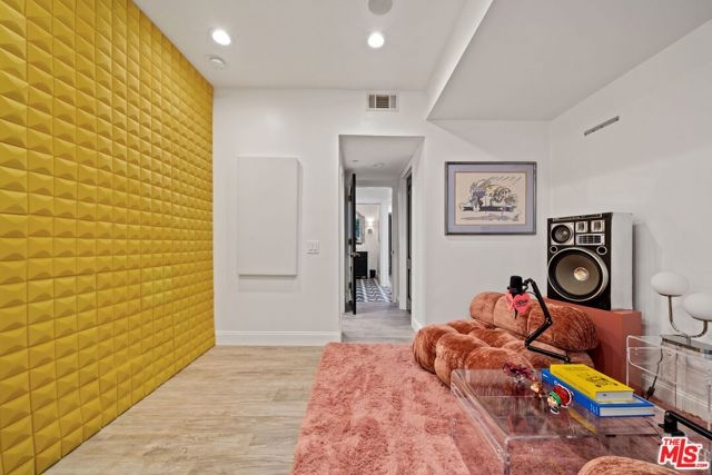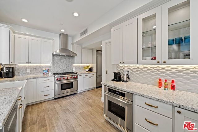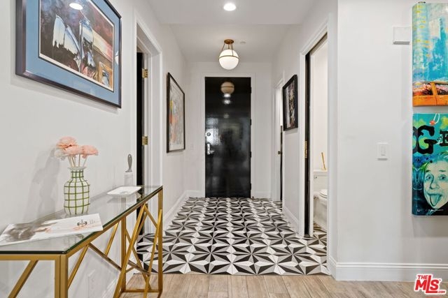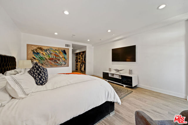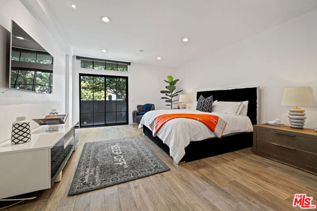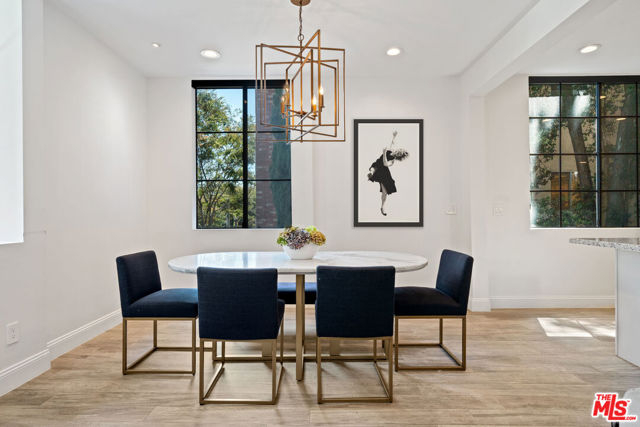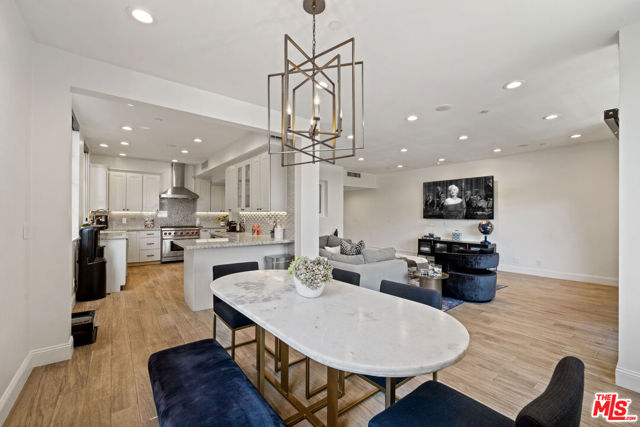 Rarely available, front-facing Beverly Hills condo updated with impeccable taste and high-quality finishes, ideally located just off South Beverly Drive with effortless access to the city's finest dining, shopping, and everyday conveniences.This stylish second-floor residence (the first floor of the building is the lobby) offers an open floor plan with abundant natural light throughout. The spacious living and dining areas flow seamlessly to a lengthy balcony framed by lush treetop viewsperfect for entertaining or simply relaxing. The sleek modern kitchen is beautifully appointed with granite counters, custom under-lit cabinetry, stainless steel professional-grade appliances, and an eat-in bar counter.The lavish primary suite features a private balcony, huge walk-in closet with built-ins, and a spa-inspired bath with marble and gold finishes, dual vanities, soaking tub, steam shower, and heated floors. The second en-suite bedroom, currently configured as a podcast studio and content creator's lounge, offers unique versatility and can easily be transitioned back to a full bedroom suite.Additional highlights include a large in-unit laundry room, two parking spaces plus guest parking, and a secure building with updated key entry system and elegant lobby. This bright, airy corner unit lives like a single-family home, all just steps from South Beverly Drive, Rodeo Drive, and everything Beverly Hills has to offer.