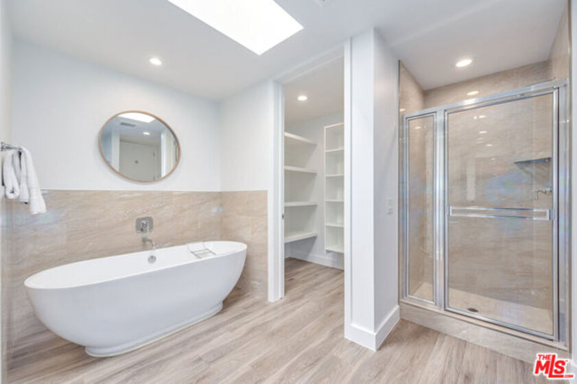 Welcome to 268 S. Lasky Drive, Unit 303 a stunningly remodeled top-floor corner residence offering penthouse-style views in the heart of Beverly Hills. Nestled on a tree-lined street near the iconic Beverly Hills Golden Triangle and located within the highly sought-after Beverly Hills School District, this rare 2-bedroom, 3-bath condominium boasts over 2,100 square feet of refined living. The airy, bright living area is illuminated by floor-to-ceiling sliding glass doors and features a stylish fireplace, a formal dining space, and a chic entertainment zone complete with a wine fridge perfect for both intimate evenings and larger gatherings. The gourmet kitchen has been thoughtfully remodeled with custom cabinetry, a Sub-Zero refrigerator, Wolf range, extensive quartz countertops, and a generous eat-in island ideal for culinary creativity and casual dining.The expansive primary suite offers tranquil tree-top views, a large walk-in closet, and a spa-quality ensuite bathroom featuring double sinks, abundant counter space, a separate designer soaking tub, stand-alone shower, and a private water closet for added comfort. The second bedroom is a private suite of its own, featuring a full ensuite bathroom and a spacious closet ideal for guests or family members seeking privacy and convenience. A stylish powder room is located just off the main living area, and an in-unit laundry room adds ease to your everyday routine. Additional features include extra storage, generous closets throughout, two side-by-side parking spaces, and plentiful guest parking. This exceptional corner unit is located in a secure, well-maintained, and recently upgraded building that offers 24/7 controlled access, an advanced security system, and professional lobby staff on-site during weekday business hours. Live moments from world-renowned shopping on Rodeo Drive, fine dining, high-end entertainment, Century City Mall, Rancho Park Golf Course, and The Los Angeles Country Club. This penthouse-level move-in-ready gem feels every bit like a private home, while providing all the ease and security of luxury condominium living.