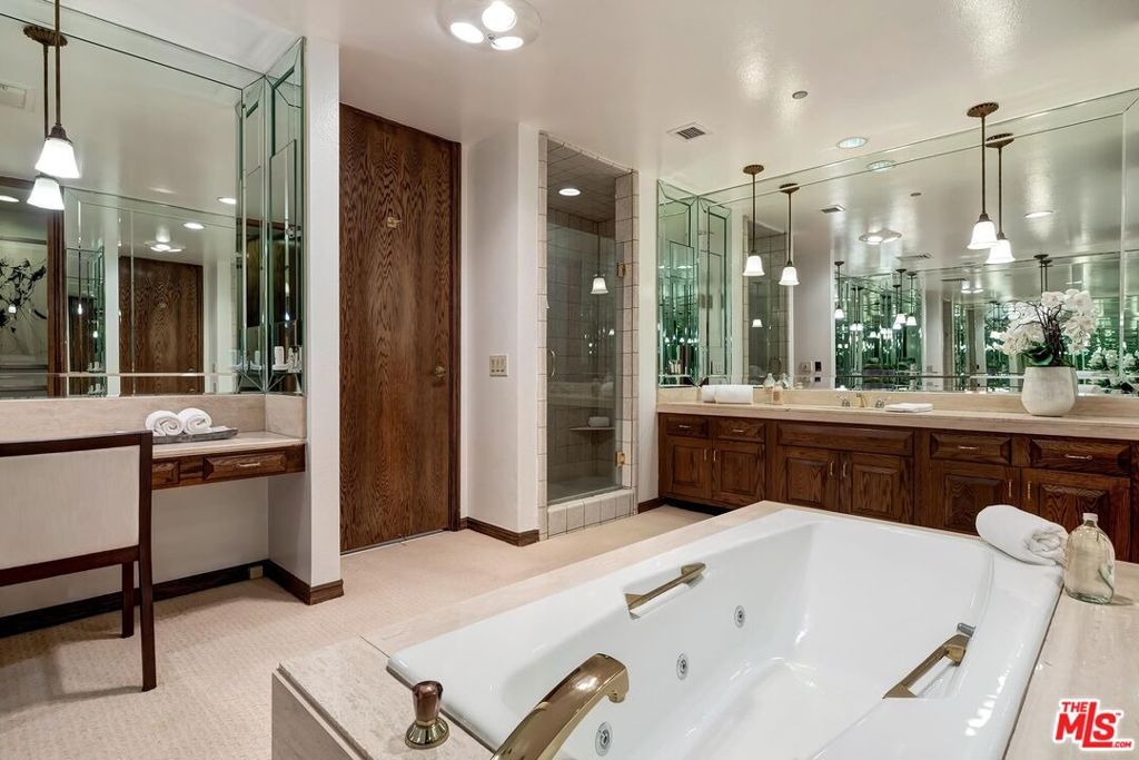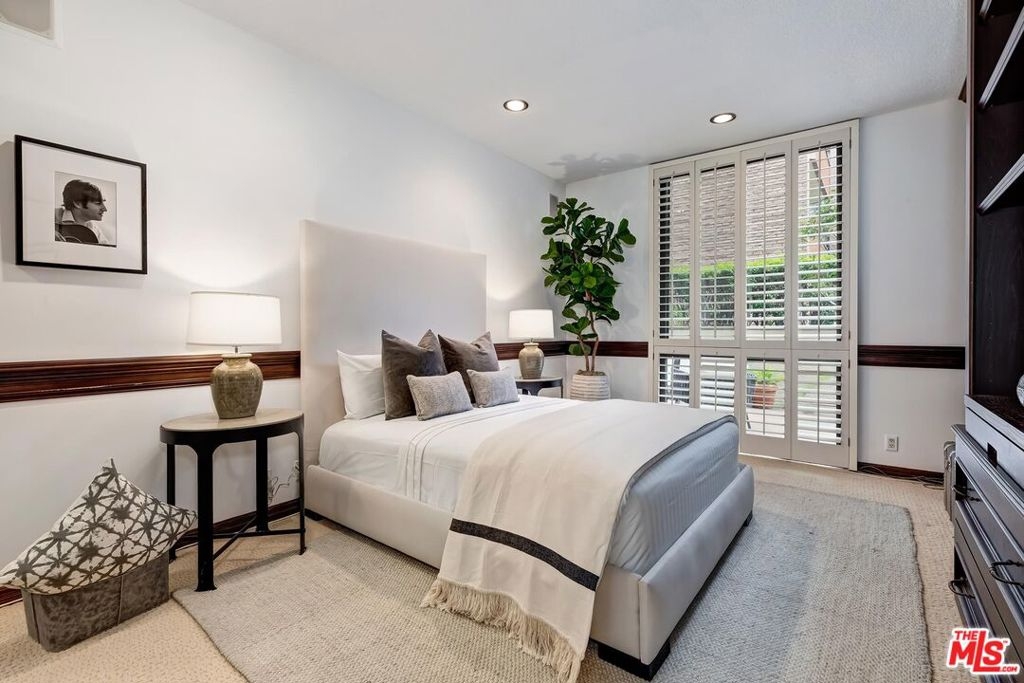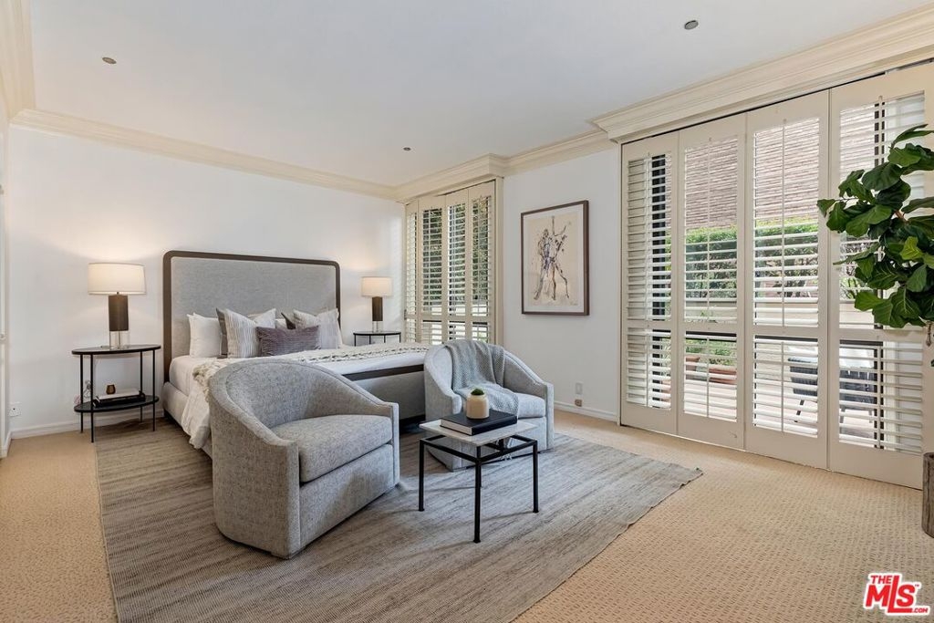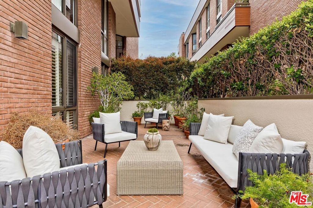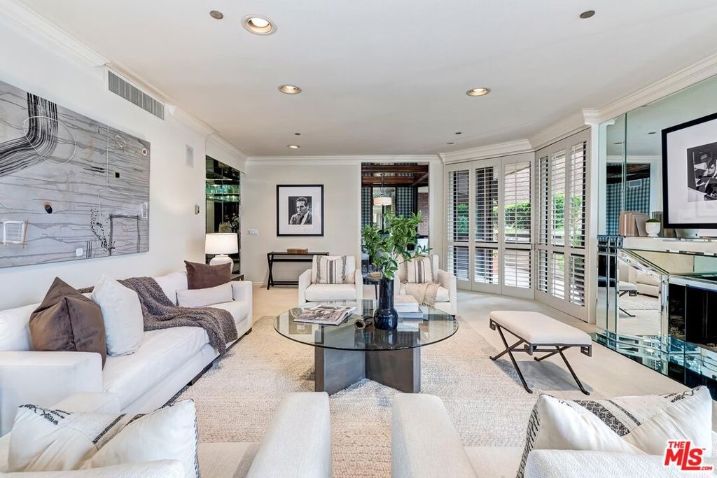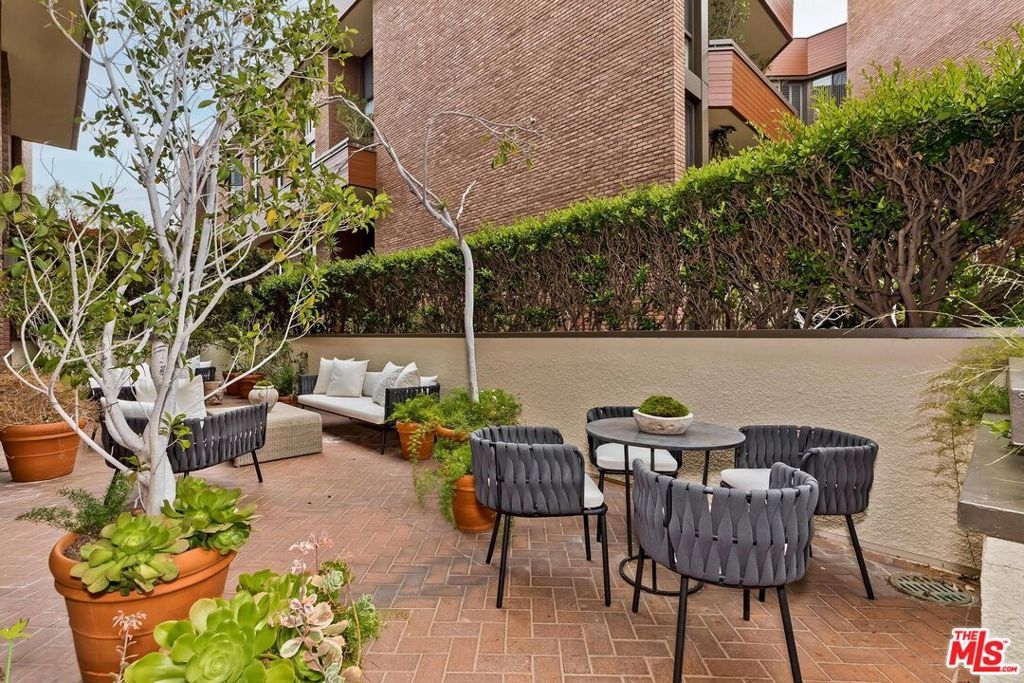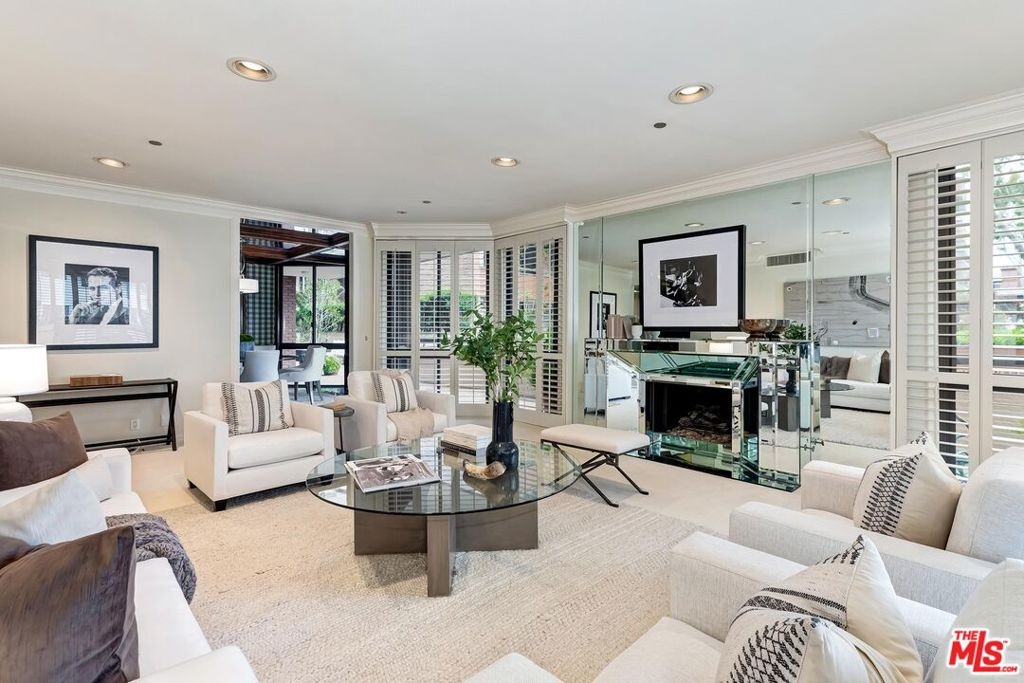 Stunning sun filled front facing 2 bedroom + Den at Premier BH full service IV Seasons Condominiums located on a quiet tree-lined street. Coveted location in the building on second floor has huge wonderful patio with garden views. Features include high ceilings, fireplace, crown moldings, recessed lighting, plantation shutters and floor to ceiling windows and doors. Formal entry leads to Large Living & formal Dining rooms perfect for entertaining. Wood paneled large Den with wet bar. Lavish primary suite with dual walk in closets and luxury size bath. Guest suite with built ins. Chefs Kitchen with breakfast area opening to patio. The building is known for its fabulous services including 24/7 full time doorman, valet parking for residents and guests, a heated pool & spa, gym and the condo includes extra storage. Prime location close distance to dining and shops. This building offers a great lifestyle in the heart of Beverly Hills!