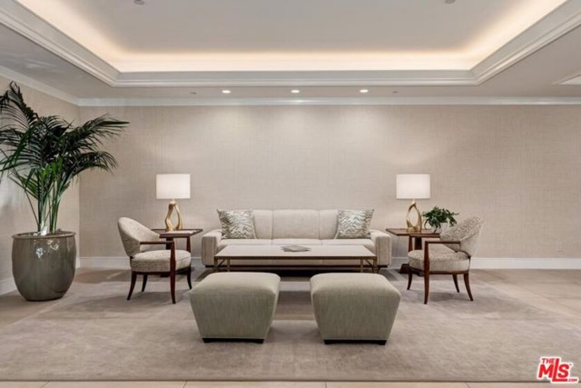 Now the Deal of the Year! Absolutely phenomenal value (lowest-listed price per foot in years) for this fabulous updated unit located on the 2nd level of the coveted low-rise IV Seasons Condominiums featuring high ceilings, walls of glass, newer gleaming wood floors (no carpets), a large balcony, and substantial patio space. Sleek newer cook's kitchen with large breakfast area and fantastic storage. Great room with fireplace and balcony access. Separate big paneled den with wet bar. Huge primary bedroom suite with 4 closets (two are walk-ins), elegant bath, and patio access. Full-service building with 24 hour valet (residents and guests), security, concierge, gym, sauna, pool, spa, and solid extra storage. Newly and exquisitely renovated reception areas and hallways add to the appeal of this already prestigious building which is proximate to all of the finest Westside amenities.