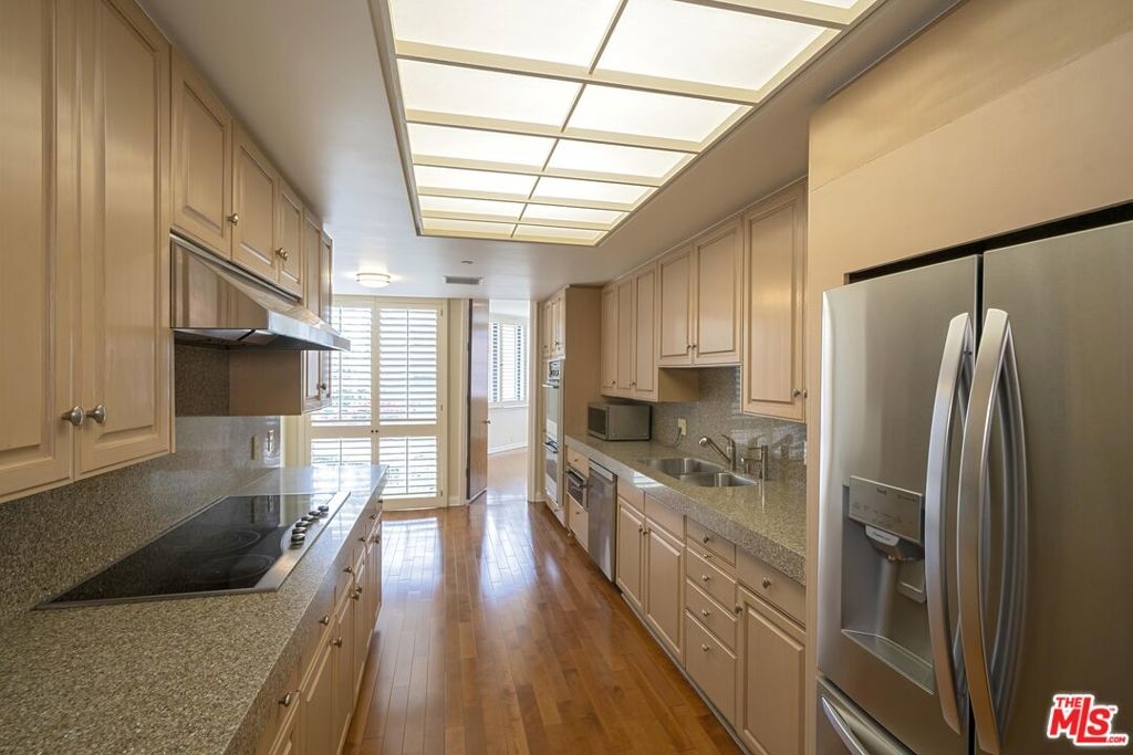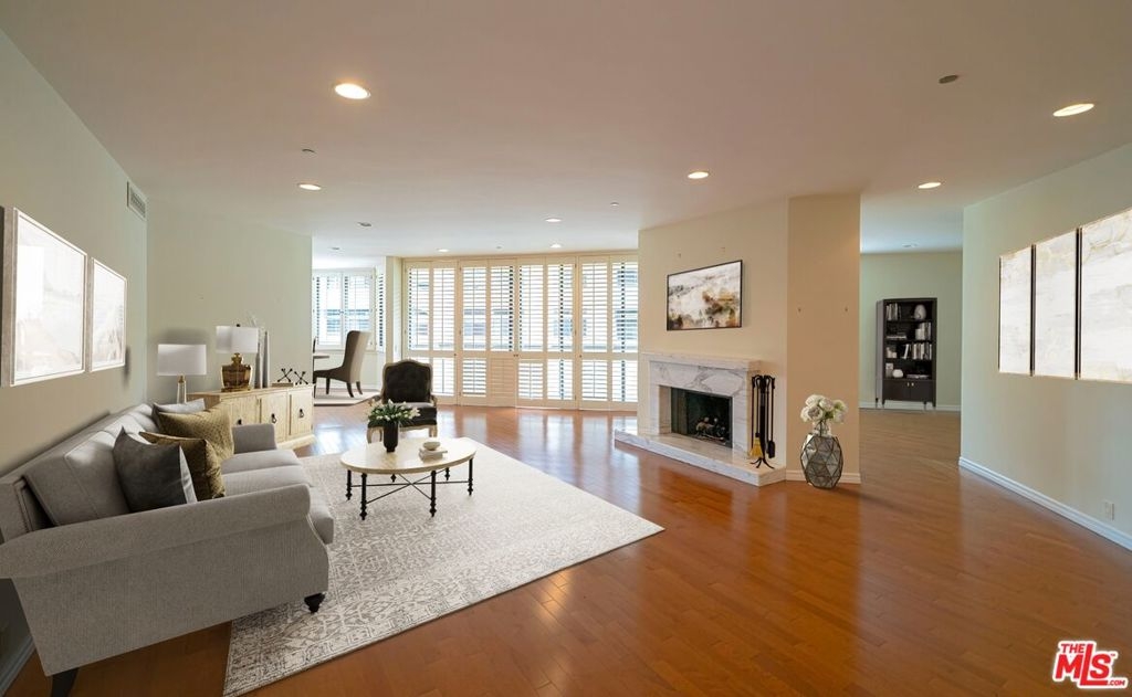 Best Priced Unit! Welcome to the prestigious, highly sought after IV Seasons Resort Style Complex! This unit boasts almost 2700 Sq. Ft.! Enjoy the open spacious floorplan with floor to ceiling windows, plantation shutters, hardwood floors and recessed lighting! A large open, spacious Living room with a comfy, cozy Fireplace, separate Dining area, a Den/Office and a Balcony facing the Greenbelt. Kitchen with a breakfast area, granite tops. 2-year new Refrigerator, Dishwasher, and Garbage disposal. 2-year new carpeted Bedrooms. 2-year new carpeted 2nd bedroom Bathroom! A primary Suite with tons of closet space throughout! A luxurious mirrored primary Bath with 2-year new marble tiled flooring! A re-glazed shower, his & hers marble counter tops, dual sinks, separate toilets, and a soaking tub. Dual zoned A/C. 2-year new Front A/C. 2-year newly painted interior! Full 24-hour Security, Valet, and Concierge service, Fitness Center, Pool and Spa! 2 side by side parking spaces and storage area. Close to downtown Beverly Hills shopping, restaurants, and entertainment!