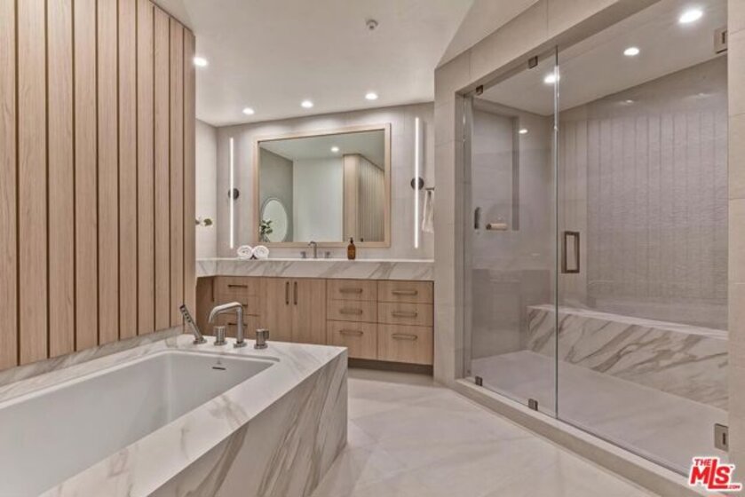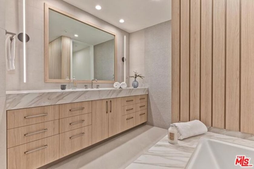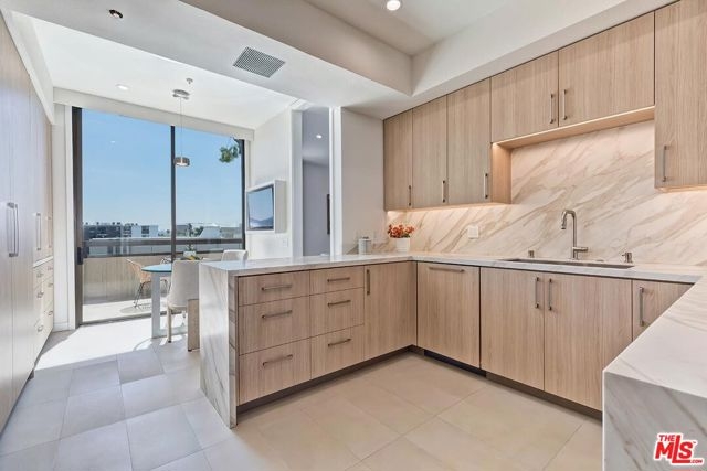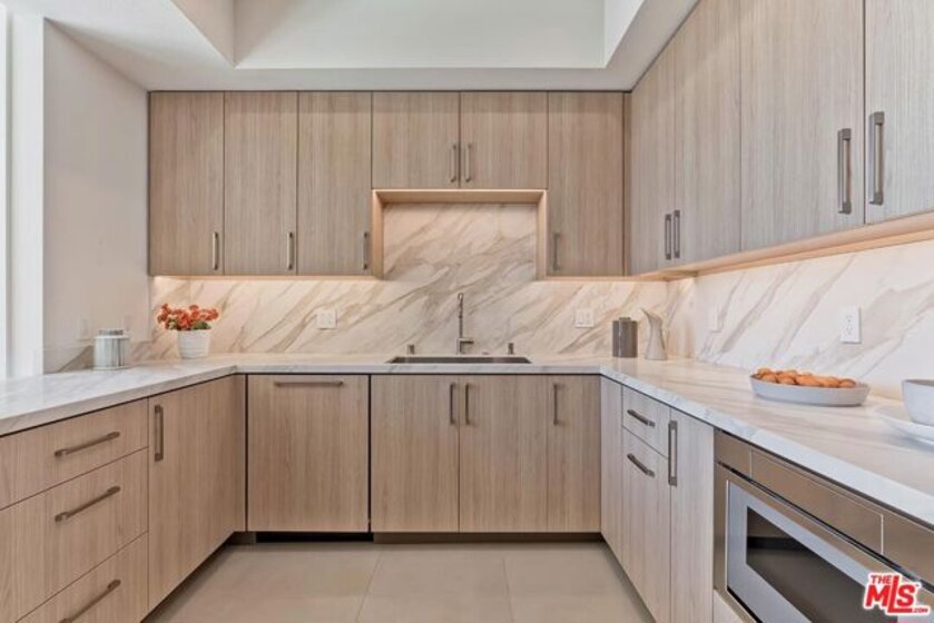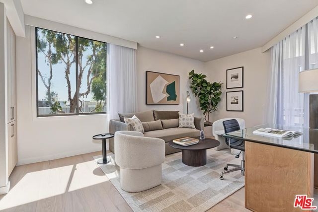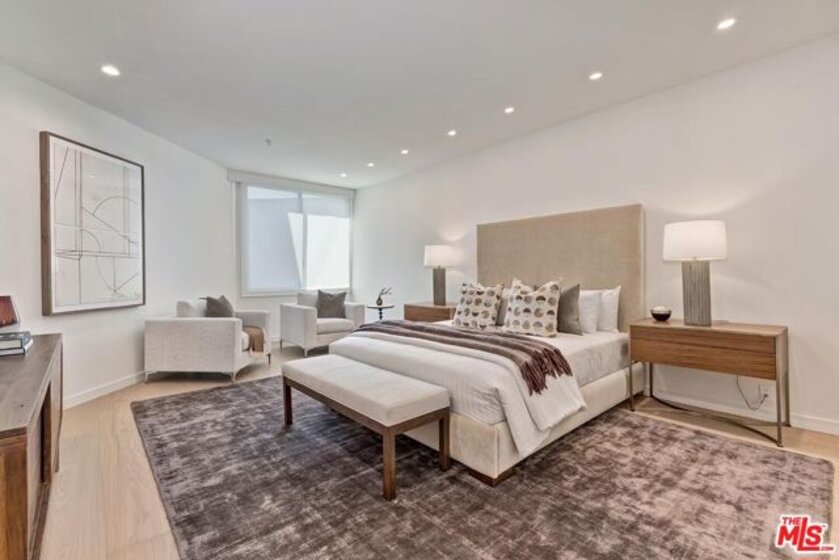 Presenting an exclusive opportunity for discerning buyers: a condominium at the esteemed IV Seasons North Condominiums in Beverly Hills. Reenvisioned by an internationally published and nationally award-winning architect, this residence features a tasteful aesthetic and soft color palette complemented by elegant architectural details. Upon entering through the formal foyer, you'll find a well-appointed living room with a custom fireplace and cabinetry, an adjacent formal dining room, and a gourmet kitchen equipped with top-of-the-line appliances, custom cabinetry, and a breakfast area. The expansive living and breakfast room terraces provide serene tree-top, city, and mountain views, enhancing the seamless indoor-outdoor flow of the residence. The primary suite serves as a private retreat, complete with dual custom walk-in closets and a spa-inspired bath with designer finishes, a soaking tub, a glass-enclosed stall shower, a linen closet, and a private water closet. The spacious secondary guest suite includes 2 closets and a modern en-suite bath. A versatile den offers space for a home office, media room, or additional living area. The redesigned in-unit laundry room adds convenience and houses new HVAC equipment. Residents of IV Seasons North Condominiums enjoy luxury amenities, including 24/ 7 doormen, valet parking, a newly updated pool and spa, a gym, and secure storage. The central Beverly Hills location offers proximity to the vibrant dining, and shopping scenes of Beverly Hills & Century City, West Hollywood's nightlife and dining, the upscale Melrose design and couture shopping district, and the arts and culture of Los Angeles.