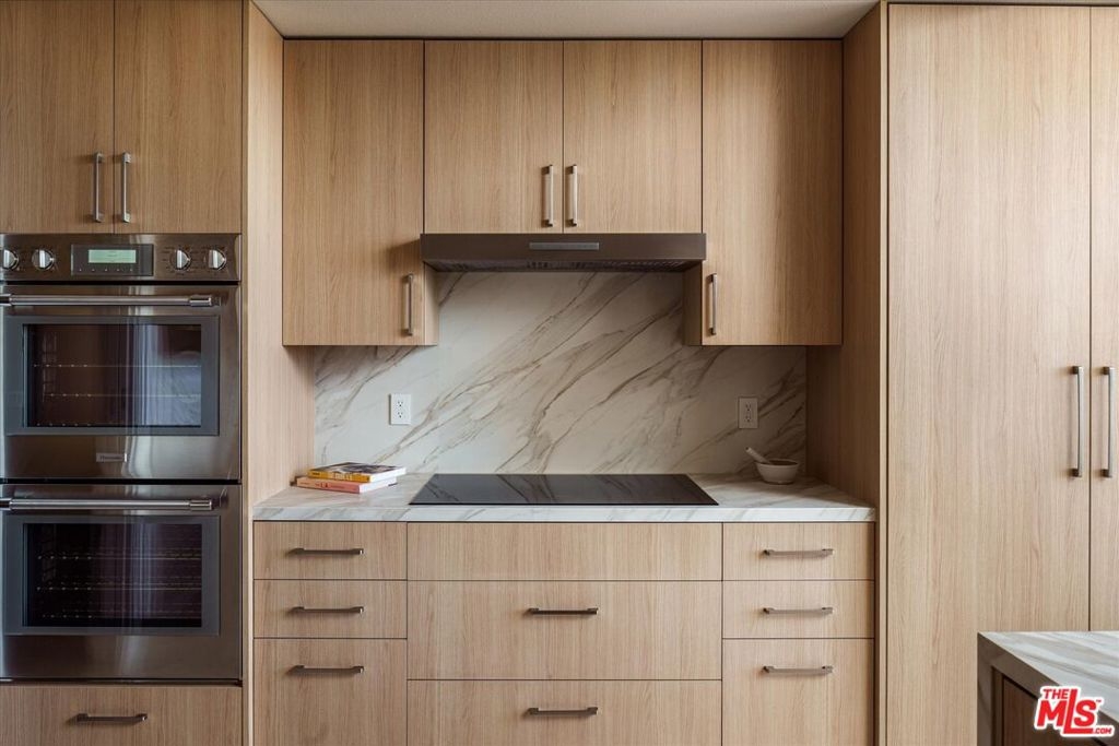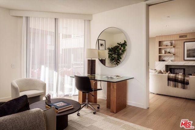 Presenting an exclusive opportunity for discerning buyers: a condominium at the esteemed IV Seasons North Condominiums in Beverly Hills. Reenvisioned by an internationally published and nationally award-winning architect, this residence features a tasteful aesthetic and soft color palette complemented by elegant architectural details. Upon entering through the formal foyer, you'll find a well-appointed living room with a custom fireplace and cabinetry, an adjacent formal dining room, and a gourmet kitchen equipped with top-of-the-line appliances, custom cabinetry, and a breakfast area. The expansive living and breakfast room terraces provide serene tree-top, city, and mountain views, enhancing the seamless indoor-outdoor flow of the residence. The primary suite serves as a private retreat, complete with dual custom walk-in closets and a spa-inspired bath with designer finishes, a soaking tub, a glass-enclosed stall shower, a linen closet, and a private water closet. The spacious secondary guest suite includes 2 closets and a modern en-suite bath. A versatile den offers space for a home office, media room, or additional living area. The redesigned in-unit laundry room adds convenience and houses new HVAC equipment. Residents of IV Seasons North Condominiums enjoy luxury amenities, including 24/7 doormen, valet parking, a newly updated pool and spa, a gym, and secure storage. The central Beverly Hills location offers proximity to the vibrant dining, and shopping scenes of Beverly Hills & Century City, West Hollywood's nightlife and dining, the upscale Melrose design and couture shopping district, and the arts and culture of Los Angeles.