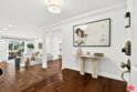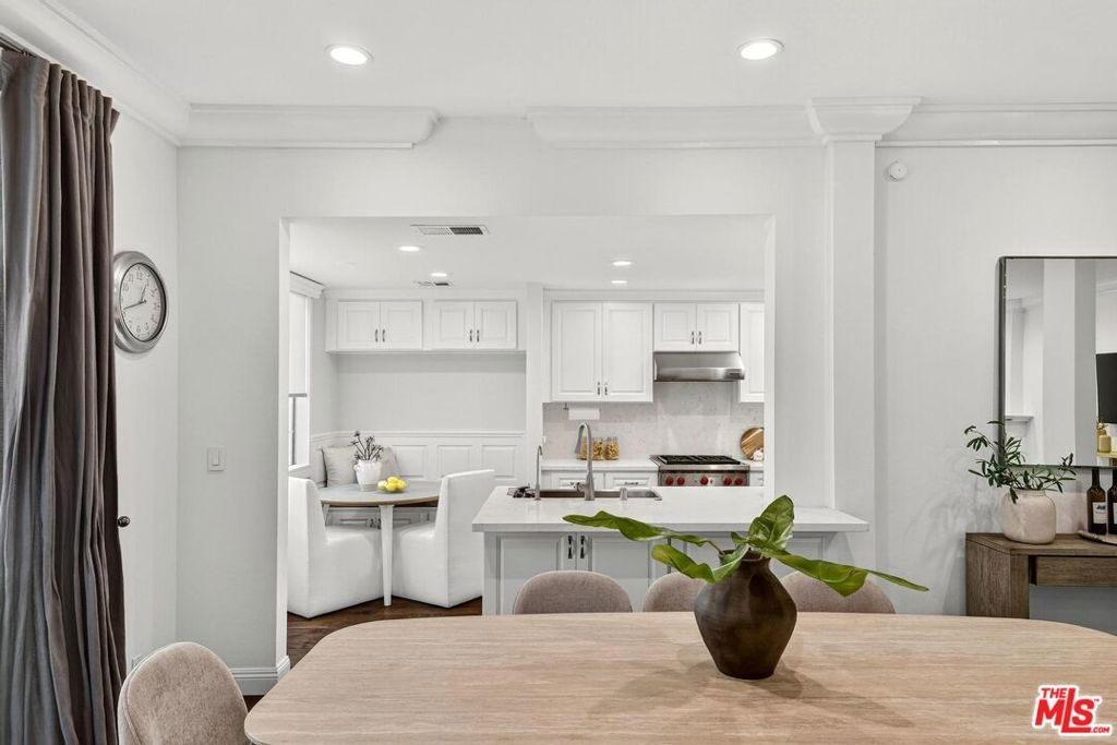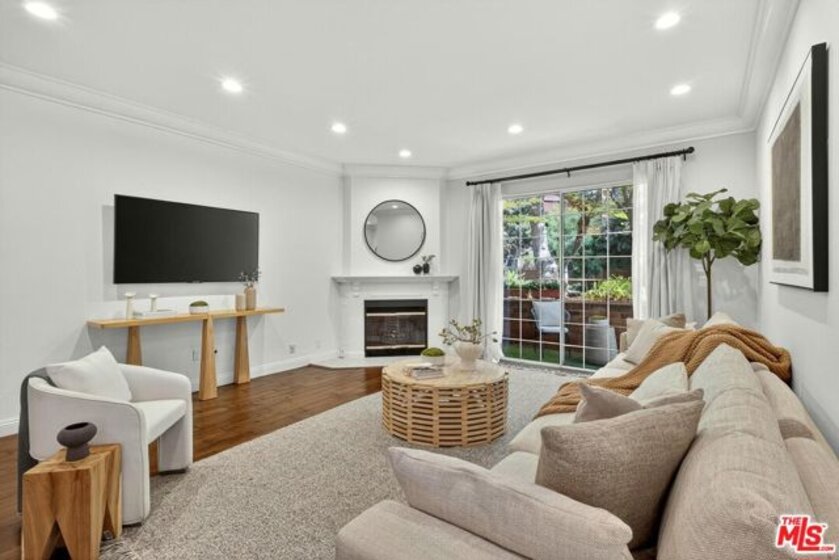 On a peaceful, tree-lined street in prime Beverly Hills, this stylish residence offers the scale and presence of a private home. With an expansive wrap around yard and several sliding doors, enjoy seamless indoor-outdoor living in the heart of the City. The three bedroom unit boasts soaring ceilings, abundant natural light, and a spacious, thoughtfully designed floor plan, offering both grandeur and everyday livability with several luxurious upgrades. Upon entry, a large foyer opens up to a wonderful living, dining room, and office den. Enjoy breakfast on the front balcony or at the charming breakfast nook adjacent to a chef's kitchen that dazzles with sleek quartz finishes and premium stainless steel appliances. The formal dining area sets the stage for memorable family gatherings where you can step outside for some outdoor entertaining. The oversized primary suite with fireplace provides a private sanctuary, featuring a hotel-inspired bath with a Japanese soaking tub, luxurious marble details, and two walk-in closets. Down the hall, a dedicated laundry room and elegantly upgraded powder room are across the hall from two large bedrooms, one ensuite. This spectacular unit comes with dedicated side-by-side gated parking and extra storage space in a subterranean garage for added ease and convenience. Located in a desirable pocket of Beverly Hills, this residence is moments away from world-renowned restaurants, vibrant nightlife, and couture shopping along Rodeo Drive, Robertson Boulevard, and Melrose Avenue. With access to top-rated Beverly Hills Unified schools, this home offers elegance, convenience, and a lifestyle of true prestige.