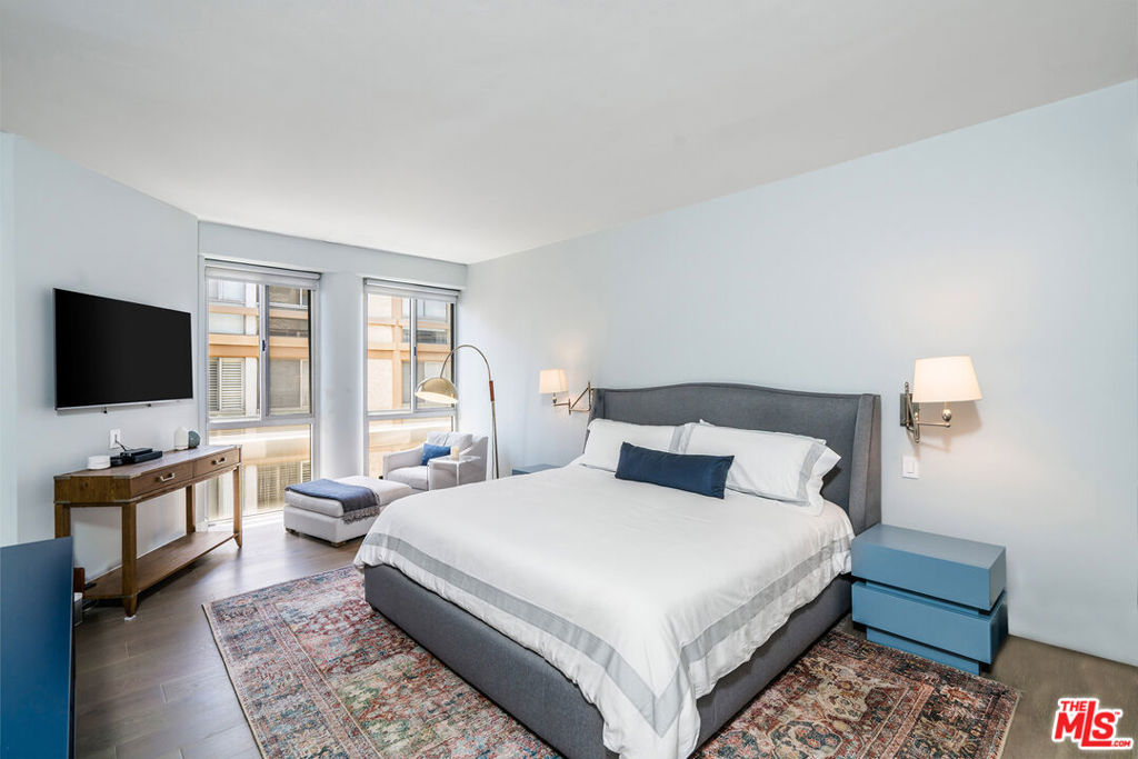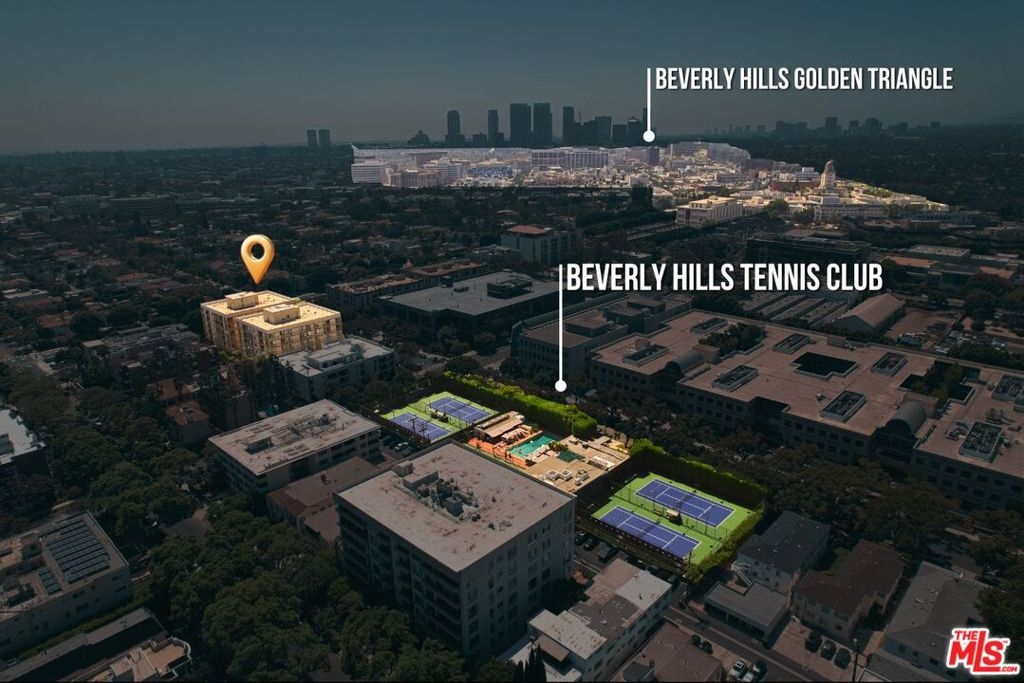Stunning views of the Hollywood Hills and Downtown LA define this beautifully renovated Maple Towers condo. Partial furnishings are available, and a quick close is possible, offering added convenience. Spanning over 2,000 sq. ft., this spacious 2-bedroom, 2.5-bath home sits just blocks from Beverly Hills' famed Golden Triangle renowned for its high-end shopping and dining and West Hollywood's vibrant Melrose Avenue. Right next door is the Beverly Hills Tennis Club, offering 5 hard courts, a 75-ft lap pool, a gym, and more. As a corner unit, the condo is flooded with natural light thanks to numerous windows, and it features an outdoor patio perfect for al fresco dining. Inside, you'll find a flexible space for an office, an open living and dining area, and a cozy gas fireplace. The primary suite boasts two large walk-in closets and a dual-vanity bathroom with a separate tub and shower, while the kitchen provides ample counter space and stainless steel appliances. Residents enjoy exclusive Maple Towers amenities such as a pool, spa, two side-by-side garage parking spaces, and additional storage.