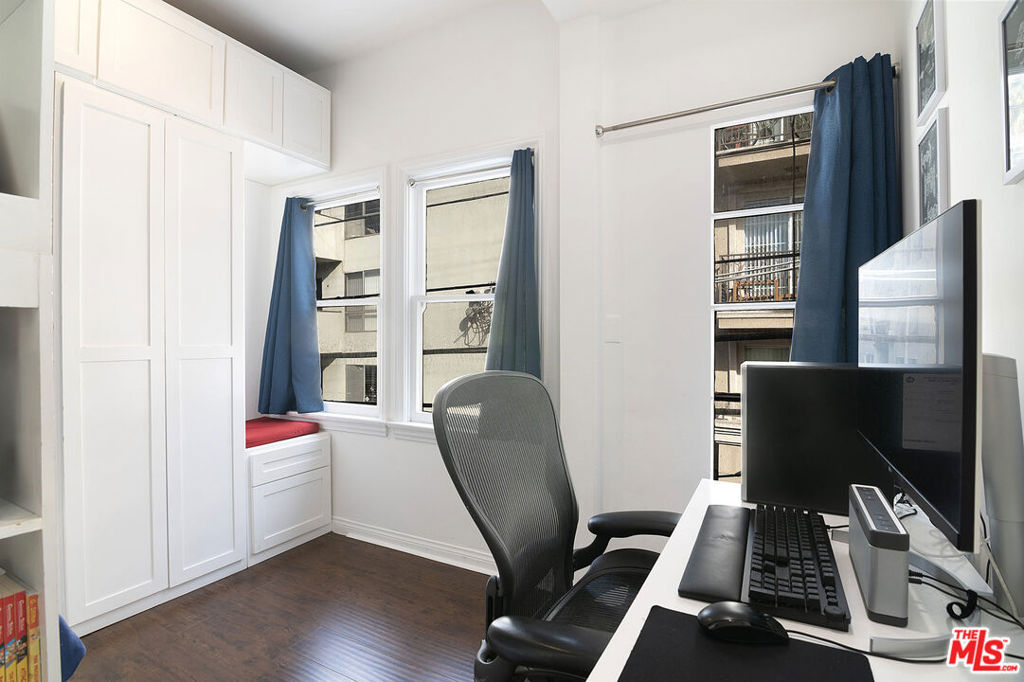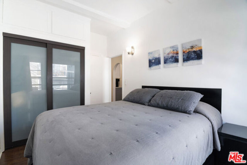 Light-filled and bright 2-bedroom Beverly Hills condo located in a charming boutique 1930s walk-up. This inviting home features wood flooring and recessed lighting throughout, with an open living and dining floor plan that creates a comfortable, relaxing atmosphere. The fully remodeled kitchen is equipped with Bosch, Verona, and Samsung stainless steel appliances, stone countertops, and ample cabinet storage. The second bedroom offers custom built-in bunk beds with integrated storage, ideal for flexible living. All utilities are included in the HOA dues - water, sewer, trash, electricity, and gas providing exceptional value. Conveniently located just minutes from the renowned Beverly Hills Village, Cedars-Sinai Medical Center, West Hollywood, and an array of shops, restaurants, and entertainment.