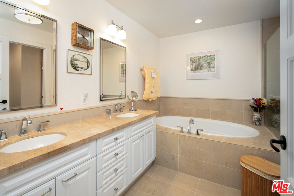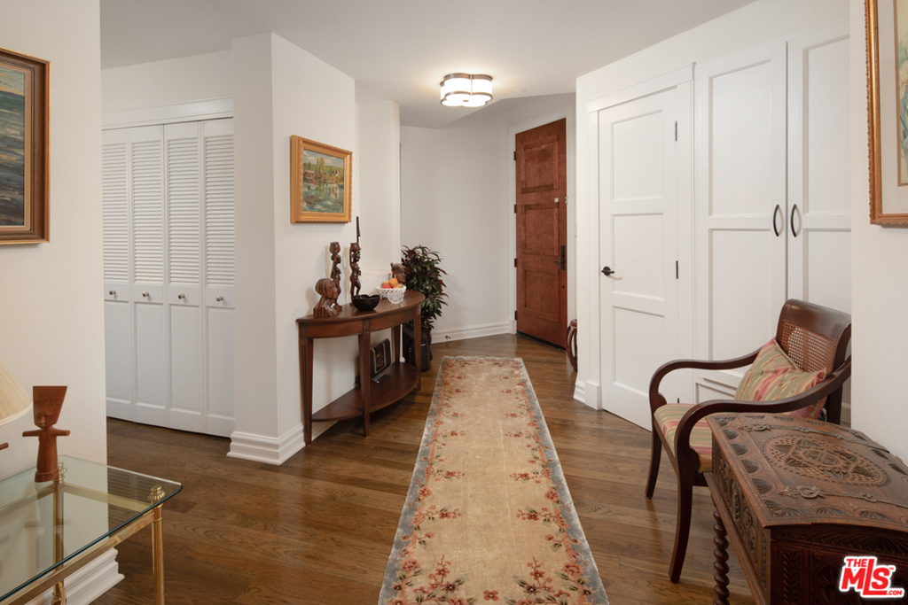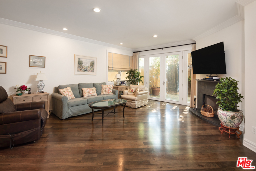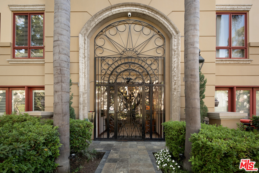 Newly renovated, light and bright 2 bedroom with den, designed w Mediterranean style fixtures and finishes in the elegant building, The Oakhurst. Located on a prime tree-lined street in BH. This open floor plan home boasts high ceilings throughout, a grand living room and dining area, beautiful custom hardwood floors and windows coverings, recessed lighting, and crown moldings. The recently redone open kitchen comes complete with state of the art appliances and finishes, stone countertops, and custom cabinetry. Bdrms are master suites next to the den which could easily be converted to a 3rd bedroom. French doors lead out to an XL private patio garden area surrounded by bamboo. Main floor, quiet and spacious luxury condo with one common wall. HOA dues include earthquake insurance, and three parking spaces and guest parking, along with 24/7 concierge and security services. Live in one of the most sought after locations, walking distance to some of the most famous restaurants and shopping