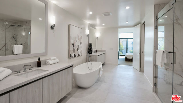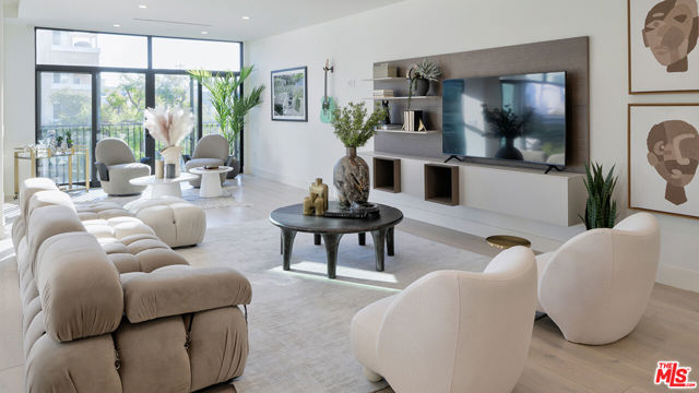 Welcome to 425 Palm in Beverly Hills. Residence 403 offers direct elevator access opening into your private foyer. This expansive 2-bedroom, 2.5-bath home features 2,986 interior SF, a 122 SF private veranda, and a 752 SF private rooftop patio. The open-concept layout flows seamlessly from the gourmet kitchen to the dining and living areas. Impeccable interior finishes include Wolf and Sub-Zero appliances, a Miele built-in coffee system, Caesarstone countertops in the kitchen and bathrooms, Italian Gessi fixtures, and custom imported Linea Quattro European cabinetry. Additional features include a private veranda, dedicated laundry room, and 3 side-by-side subterranean parking spaces. 425 Palm offers an on-site fitness center with top-of-the-line equipment, outdoor gourmet kitchen, wood decking with sunken spa, dedicated lobby with 24-hour on-site staff, controlled access, and subterranean side-by-side parking.
