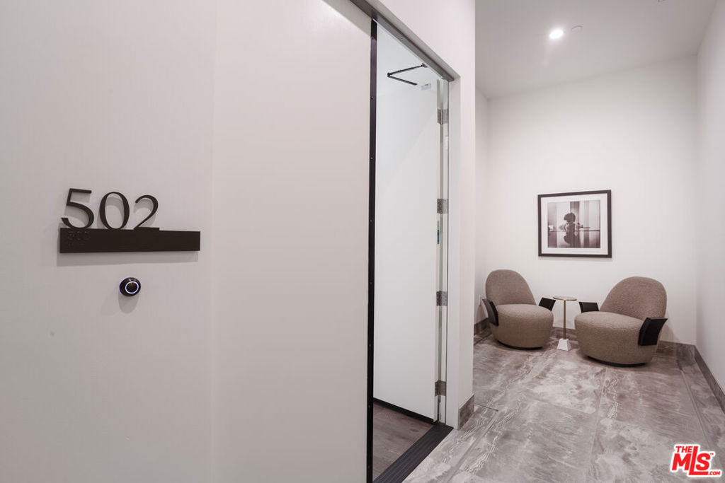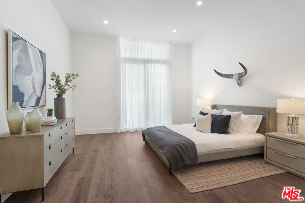 Discover Penthouse 502 at 425 Palm in Prime Beverly Hills. Crowning the building, this exceptional 3-bedroom, 3.5-bath residence spans 3,554 SF of interior living space plus a 150 SF private veranda and an expansive 829 SF fully customizable rooftop deck with unobstructed views of the Los Angeles skyline and the iconic Hollywood Hills. Semi-private elevator access opens directly into your private foyer, setting the tone for sophisticated, elevated living. The open-concept layout flows seamlessly from the gourmet kitchen to the dining and living areas, designed for both everyday living and effortless entertaining. Floor-to-ceiling windows flood the space with natural light. Impeccable interior finishes throughout include Wolf and Sub-Zero appliances, a Miele built-in coffee system, Caesarstone countertops in the kitchen and bathrooms, Italian Gessi fixtures, and custom imported Linea Quattro European cabinetry. Additional features include a dedicated laundry room and three side-by-side subterranean parking spaces. 425 Palm offers a boutique residential experience with an on-site fitness center featuring premium equipment, a rooftop terrace with an outdoor gourmet kitchen and sunken spa, dedicated lobby with 24-hour on-site staff, and controlled access. Ideally located in the heart of Beverly Hills, moments from world-class dining, shopping, and entertainment.