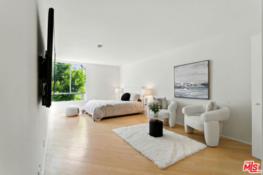 Welcome to this beautiful second-floor condo in Park Oakhurst, an exclusive 15-unit building on Oakhurst, one of Beverly Hills' most desirable tree-lined streets, just north of Beverly Blvd. Close to West Hollywood , Rodeo Drive, the Wallis Annenberg Center for the Performing Arts, the Civic Center, and the most iconic dining and luxury shopping in the country. This spacious residence offers a custom Italian kitchen with granite countertops, frameless cabinetry, and a generous pantry perfect for entertaining. light color floors run diagonally throughout the unit , while large windows fill the home with natural light and tranquil tree views. The oversized primary suite includes a spacious closet and an en-suite bath. Both bedrooms are well-proportioned with ample storage. Enjoy the convenience of in-unit laundry, central air and heat, and two parking spaces in a secure underground garage with additional storage. The controlled-access building features remote garage entry, updated lobby , shared courtyard, and security cameras on every floor. Low HOA dues include earthquake insurance, hot and cold water. Located just a short stroll from Cedars-Sinai Medical Center, farmers markets, and everyday conveniences, this condo is also within the highly rated Beverly Hills School District and benefits from premium Beverly Hills city services. Don't miss the chance to personalize this home and experience luxury living in the heart of 90210. Park Oakhurst building upgrades include Butterfly Mx intercom, New "cool" roof application (2020). painting of the exterior of the building, remodeling of the common courtyard, new guest parking space, Addition of a dog run and so much more! Balcony inspections have also been completed and passed.