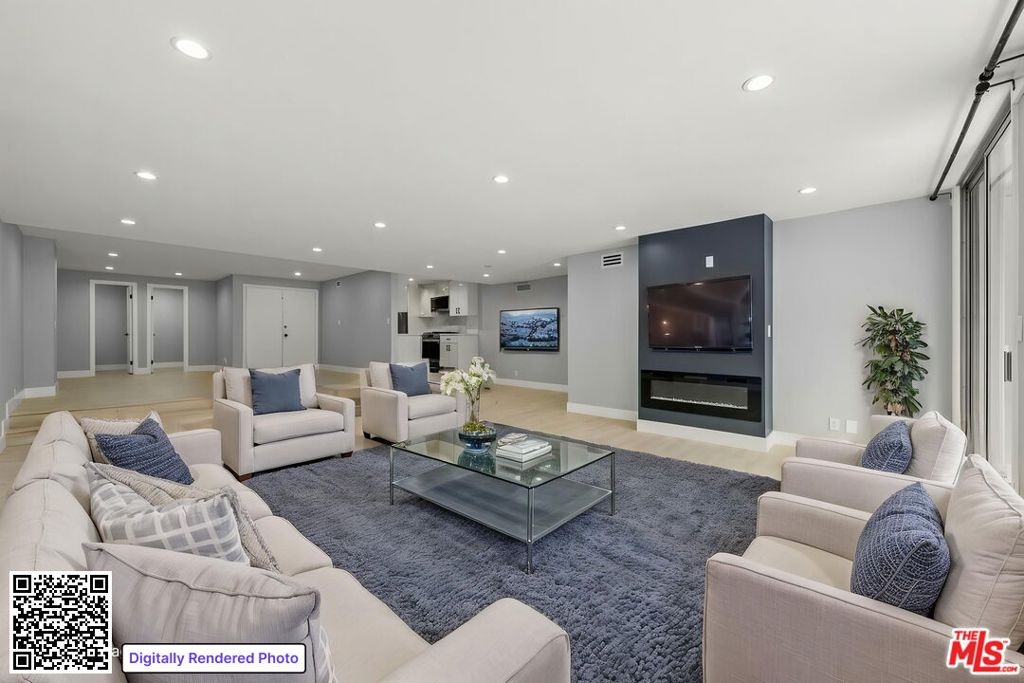 Completely renovated and remodeled Front Facing unit. 1566 square feet one bedroom unit. Light and bright. Beautiful tree lined street. Top of the line appliances. Huge living room with fire place. Two car tandem poking. HOA fees include water, Trash, and basic cable. secured building with pool. This beautiful unis is also available for lease at $5,500