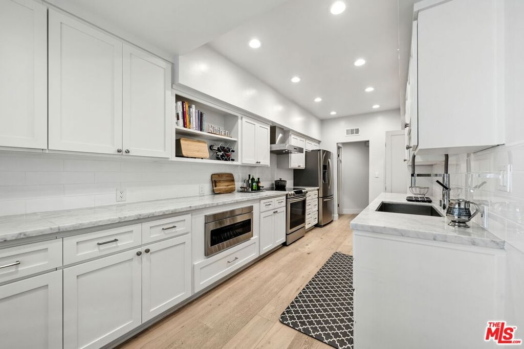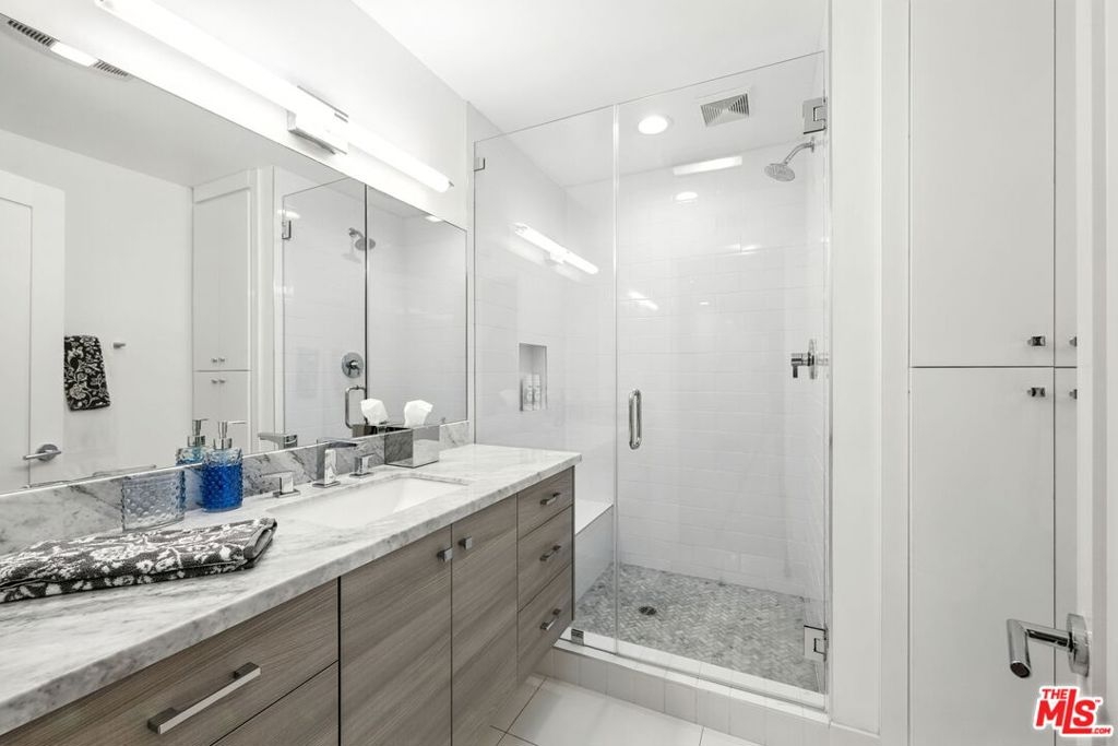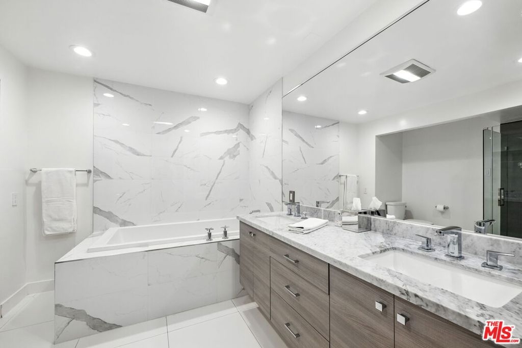 Beautiful, bright and large front facing (Western exposure) Beverly Hills condo on North Oakhurst Drive. This 2 bedroom, 2 bath unit with updated and remodeled kitchen and baths has a ton of closets and storage space. Beautiful tree lined street view from spacious living room. Separate dining room off well appointed galley kitchen with stainless steel applicances and marble counter tops. Formal entry. Large primary suite with large primary bathroom with double sinks, stand alone shower and separate tub, along with multiple closets and walk-in closet. Second bedroom is nicely appointed at front of unit. The unit has all recessed lighting on dimmers, new air conditioning unit was recently installed, new vertical plumbing pipes were done in the unit, hallway of building has been recently updated with new wall covering and new carpet. Pool has been upgraded and is heated. Building has approved budget to upgrade exterior of building. Handyman is regularly on property to help with most maintenance items. Near to Santa Monica Blvd and Melrose Avenue restaurants, bars and shops. Around the corner from Bristol Farms and Ralphs supermarkets and minutes to Beverly Hills shops and restaurants. Two side by side parking spots.
