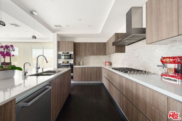 Beverly Hills Penthouse with Private Rooftop Oasis! Indulge in the pinnacle of Beverly Hills luxury on Palm Drive, where this one-of-a-kind penthouse retreat offers over 2,000 sq ft of open-air living space and spectacular 360-degree views of Los Angeles. From Beverly Hills and Century City to the Hollywood Hills, Bird Streets, and Griffith Park Observatory, every sunset and skyline moment is yours to savor. With direct elevator access to both the penthouse and rooftop, this residence ensures privacy, sophistication, and ease at every turn. The rooftop "living room in the sky" is designed for unforgettable entertaining, featuring manicured gardens, fruit trees, an outdoor spa, cabana dining, fire pit, and a full gourmet kitchen with expansive barbecue area. Inside, the 3-bedroom, 3.5-bath penthouse combines elegance with modern convenience: Expansive windows and a massive sliding door system connect the large balcony and living room for seamless indoor-outdoor living. A spacious great room with open dining and lounge areas anchors the home, complemented by a custom-crafted bar, hardwood floors, wine fridge, and immersive surround sound. The Miele-appointed kitchen features built-in plumbed coffee and filtered water systems, paired with bespoke cabinetry and sleek finishes. The master suite is flanked by two private bedroom suites, each with its own ensuite bath and closet for exceptional privacy. A custom-designed walk-in closet enhances the master suite. An additional bonus space functions as a private office or dressing room. Every detail has been curated for refined comfort: automated drapes, custom-designed closets, glass shelving, and a discreet owner's lobby with singular elevator access. The building provides full-service amenities, including: 24-hour concierge and security, Fitness center and owner's lounge. Three secure side-by-side parking spaces with EV charging, Wine closet and additional garage-level storage. Perfectly located in the heart of Beverly Hills, the residence offers the rare luxury of peace and privacy while being just moments from Bristol Farms, and the world-renowned shops and dining of Rodeo Drive. This is not simply a penthouse it is an irreplaceable lifestyle, elevating Beverly Hills living to its highest level.