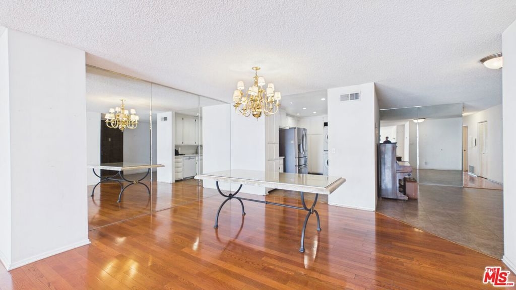 Spanning the full width of the building from east to west, this nearly 1,800-square-foot Beverly Hills condominium delivers panoramic views that require absolutely no imagination. From sunsets over Century City to sweeping eastern vistas of Downtown Los Angeles, the Hollywood Hills, and even snowcapped mountains, the outlook is extraordinary from the living room and both bedrooms. The views are real and the potential is enormous. This is a true fixer with superb upside. With two spacious bedrooms, 2.5 baths, and a large double-door entry foyer that could easily accommodate a sitting area or office, the layout offers incredible bones. The kitchen is generously sized and ready to be opened to create a seamless, modern great room. Many residences in the building have already undergone complete, high-end remodels with new windows, reimagined floor plans, and contemporary finishes offering a clear blueprint for what's possible here. The primary suite is expansive, with a substantial bath featuring dual vanities, separate tub and shower and dressing area. Storage is abundant throughout, including multiple hall closets. Hardwood floors run throughout the home, and a washer and dryer are conveniently located inside the unit. Set within a well-maintained, controlled-access building with side-by-side gated parking, storage, heated pool, sauna, and roof deck with views. This residence combines location, scale, and transformative potential all on iconic and quiet Maple Drive. Create something extraordinary in a premier Beverly Hills setting, this is the canvas! Priced for immediate sale.