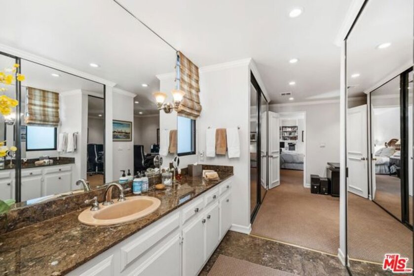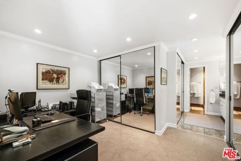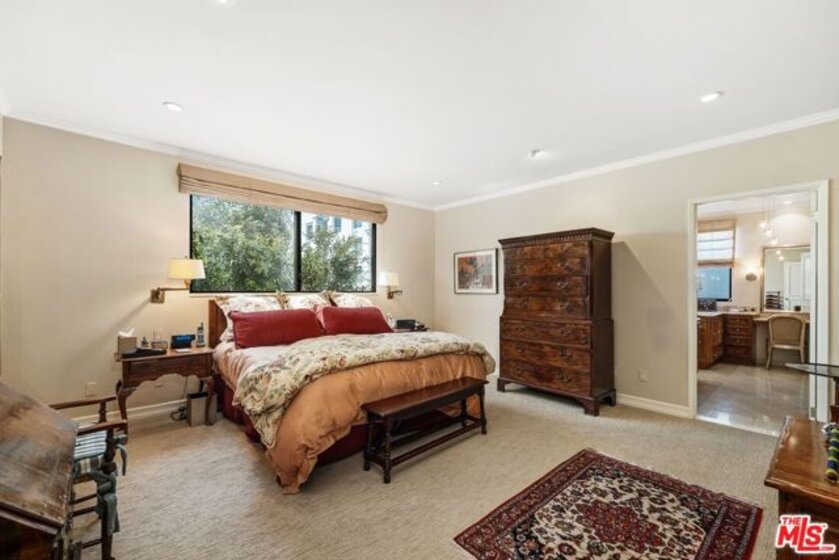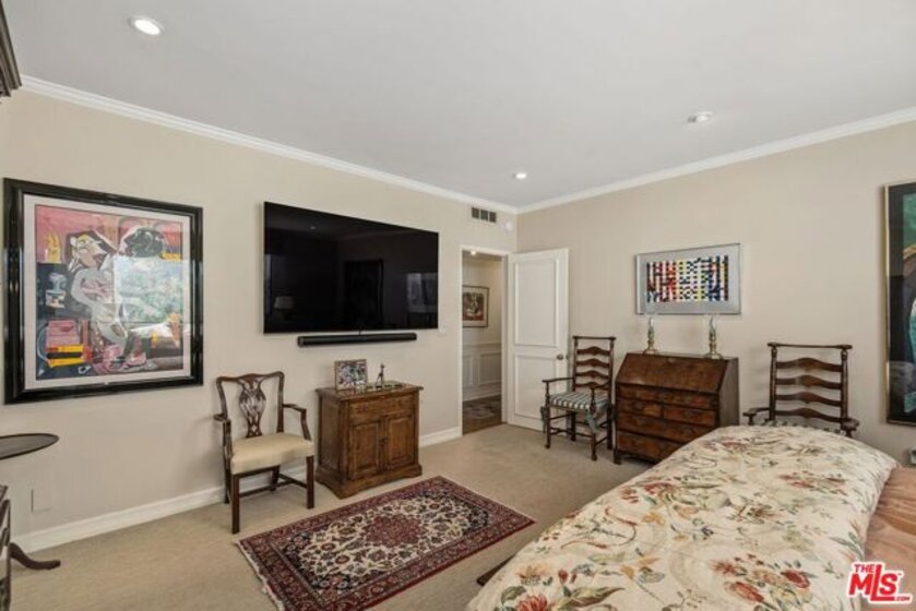Situated on a beautiful tree lined street in Beverly Hills, this "Like a Home" boutique condo with amazing square footage is in a unique 3 unit building, with the elevator going directly into each unit's foyer. Offering sophistication and luxury, this large condo has approx 2,804 square feet and has no common walls. With 2 bedrooms, a den, plus a bonus room and 2.5 bathrooms, all the rooms are spacious and large. The primary bedroom has a large walk-in closet and the bathroom has been beautifully remodeled, with heated floors. The 2nd bedroom is its own suite, with a bathroom and a separate bonus/office space, which can be a 3rd bedroom. The living room has a beautiful marble fireplace and the formal dining room is large enough for big family gatherings. The den/office (could be the 3rd bedroom) features a wood coffered ceiling, mini refrigerator, sink and built-in shelving. The eat-in kitchen features granite counters, a subzero refrigerator, a center island and automatic electric shades. The in-unit washer/dryer offers added convenience. Crown molding and wainscoting add warmth throughout the home. The wide and long hallway is ideal for artwork and family photos. The large front facing balcony, with 2 large storage closets, is a perfect setting to relax and enjoy the beautiful Southern California weather. A smaller balcony off the kitchen is great for barbecuing. There are 3 parking spaces in the garage (2 tandem, 1 separate), with an additional 2 spaces outside. Other features include a large powder room, hickory hardwood floors, recessed lighting, an abundance of in-unit storage plus a large storage room in the garage, exterior and lobby security cameras, a building alarm, 2 a/c units and 2 heating units. The location is walkable to markets, restaurants and shops in both the heart of Beverly Hills and West Hollywood. Don't miss out on this truly unique unit!