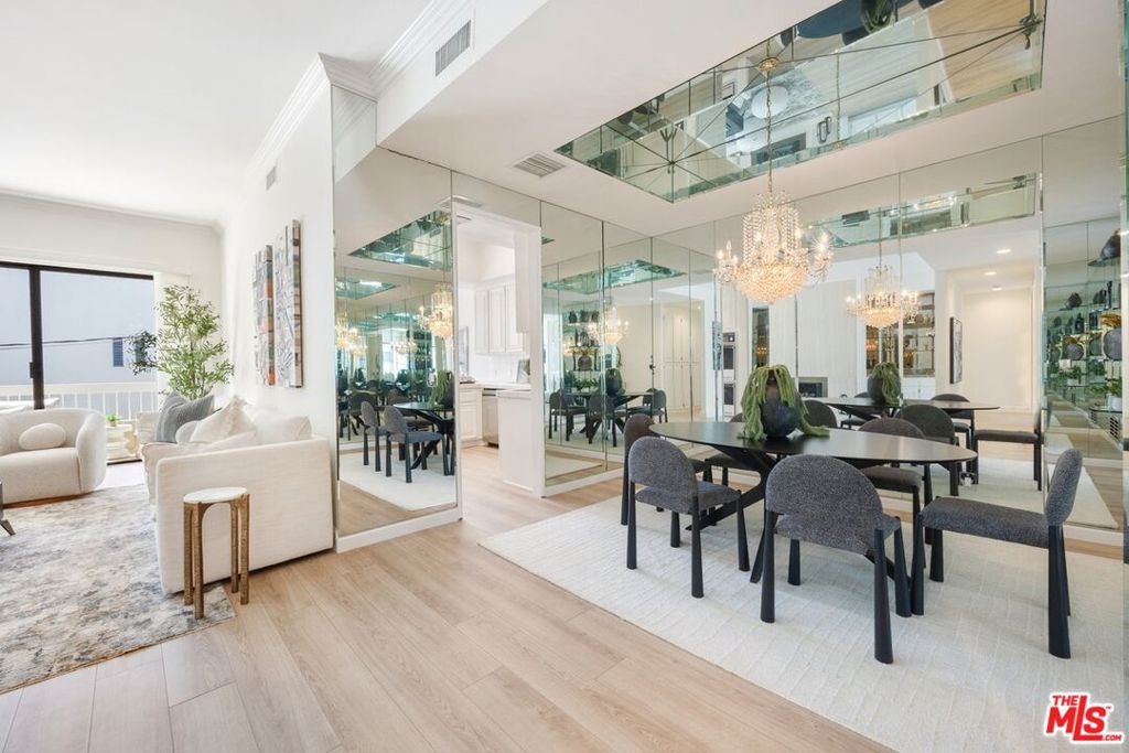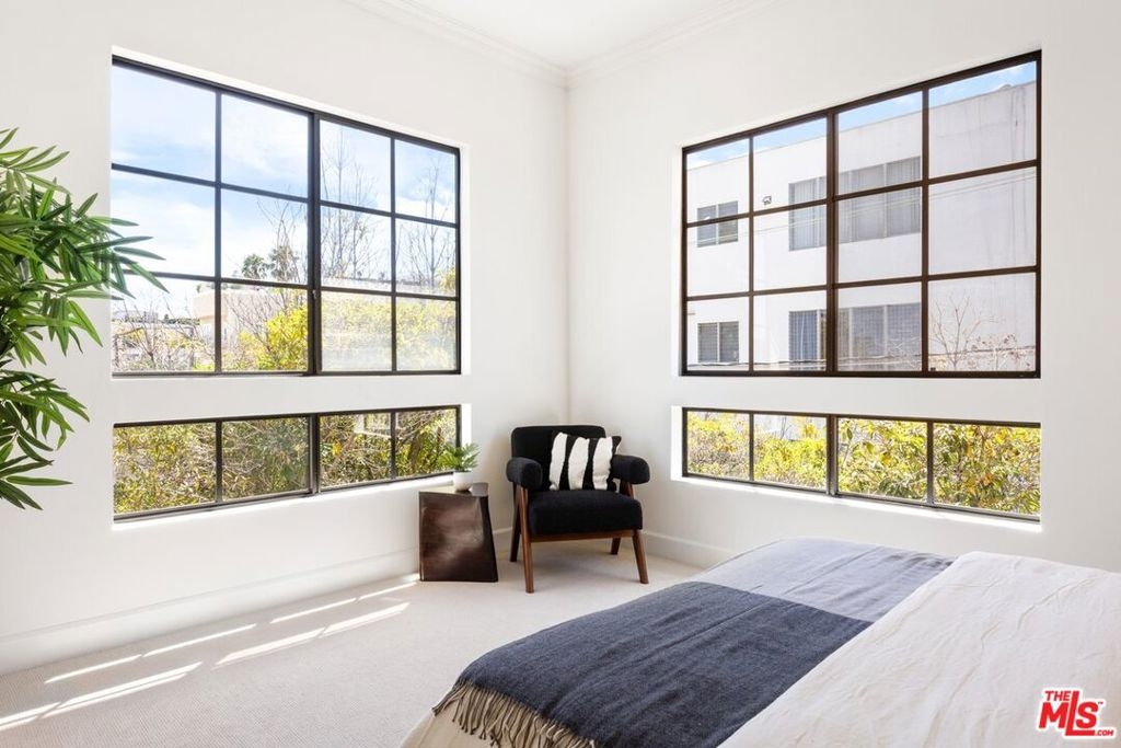 Welcome to prime Beverly Hills living! This beautifully updated 2-bedroom, 2.5-bathroom penthouse condo offers the perfect blend of style, comfort, and unbeatable location. This bright, corner penthouse unit, is drenched in natural light thanks to floor-to-ceiling windows in the spacious living area. Both bedrooms are generously sized with en-suite bathrooms, and the primary suite features an expansive closet. Recent upgrades include new laminate wood flooring, brand new carpet in the bedrooms, and a fresh coat of paint throughout. The centerpiece of the living room is a stunning marble decorative fireplace, adding a touch of elegance and charm along with an expansive private balcony accessible from both the living room and the kitchen. The kitchen is well-equipped with a new stovetop, recessed lighting, double-door refrigerator, dishwasher, pantry cabinets, and a charming breakfast area. A convenient powder room is located off the main living space. Additional features include a dedicated laundry room with washer/dryer hookups, ample storage throughout, and two assigned parking spaces in a secured garage. Situated right near iconic spots like Bristol Farms, Ralphs, the Troubadour, Dan Tana's, and both Melrose Ave and Santa Monica Blvd, this is truly in the heart of it all.