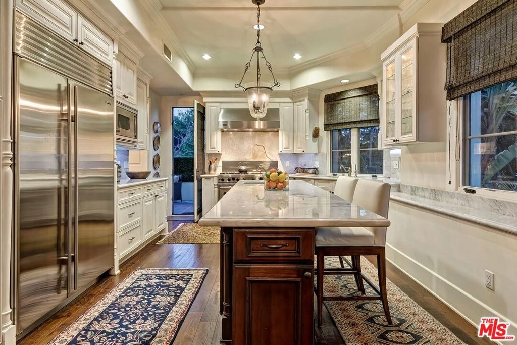 Welcome to The Barcelona residence, where refined living meets undeniable elegance in the heart of Beverly Hills. Zero steps nor the need for an elevator! This expansive designer-done single-level single family home alternative boasts three ensuite bedrooms and four bathrooms spread across over 3,200 sqft, offering unparalleled luxury in a charming boutique building with only nine residences. Step into the gourmet kitchen, a haven for culinary enthusiasts, equipped with Viking appliances, pristine Carrara marble countertops, a central island, and ample storage. The Sub-Zero refrigerator and Viking professional range top and ovens elevate your cooking experience to new heights. Unwind in the family room by the cozy fireplace, create cherished memories in the generously proportioned dining room during special occasions, and host elegant gatherings in the formal living room, all seamlessly connected with French doors to the large terrace. Additional fireplaces grace the living room and primary bedroom, infusing warmth and sophistication into every corner. The primary suite is a true sanctuary, featuring a grand custom walk-in closet and an opulent marble bathroom adorned with dual vanities and water closets. Convenience meets luxury with three side-by-side parking spaces on the same level as the unit (zero steps nor the need for an elevator to enter the unit), including an EV charging outlet, a private storage area, and a secure elevator for easy access in a boutique building of just nine units. Not to mention earthquake insurance is included with the HOA dues! Ideally situated near Roxbury Park, Century City Mall, and all that Beverly Hills has to offer in dining, shopping, and schools, The Barcelona residence promises a lifestyle of unparalleled elegance and convenience. Don't miss your chance to experience the epitome of Beverly Hills living.