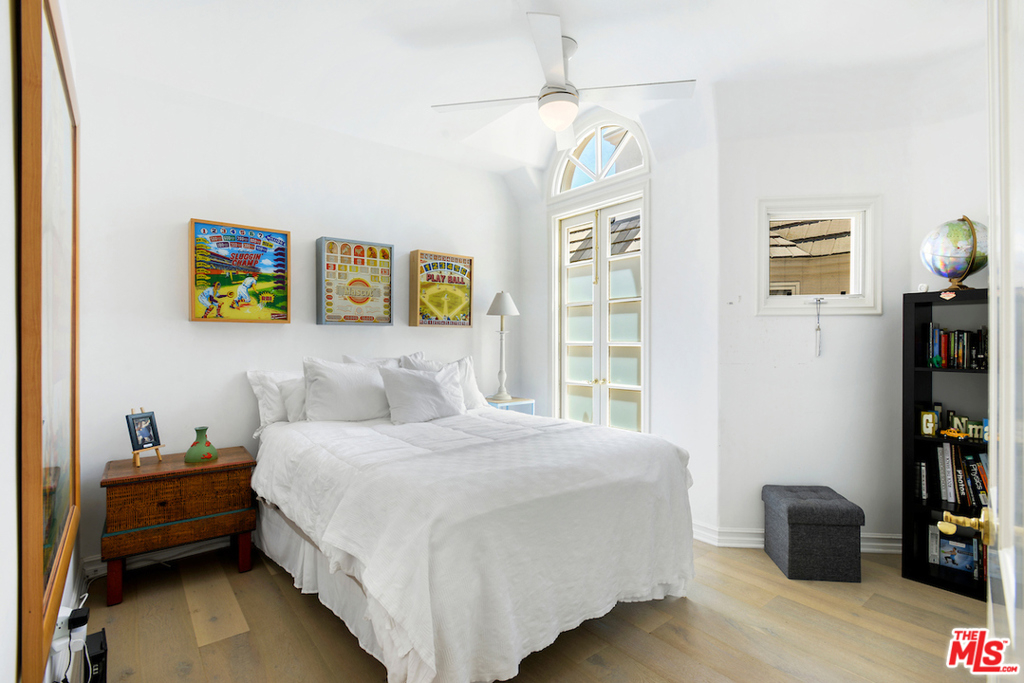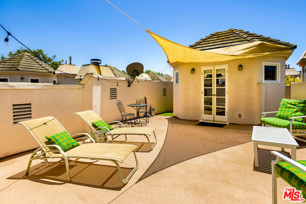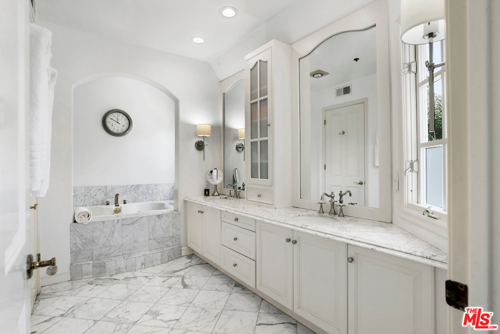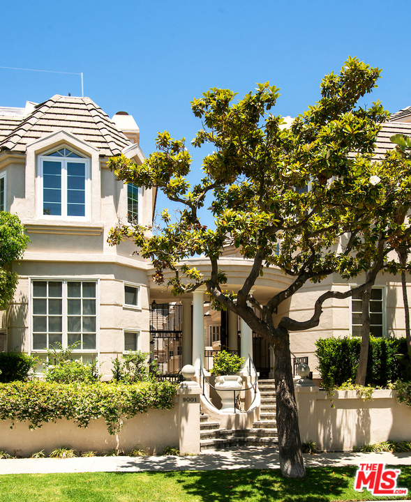Perfectly located on a lush tree lined Beverly Hills street, a block below Burton Way. A spacious townhouse with private rooftop deck & rear outdoor patio. Elegant living room with high ceilings & fireplace. Expansive dining room with plenty of room for large dinner parties. Exquisite newer Chef's eat-in kitchen with Sub-Zero's, Wolf, Bosh & Blanco appliances & fixtures...opening to sunny rear patio for outdoor dining & entertaining. Master features dual walk-ins, french doors to balcony & massive en-suite bath with Carrara marble, 2 sinks, jacuzzi tub & shower. An additional 2 bedrooms & full bathroom on this floor. Enormous downstairs rooms off direct access privately gated 3-car parking provide a large laundry room, walk-in closets & storage. There is an additional room (without window) on this level which could be 4th bedroom, office or theatre. Elevator connects 3 floors. Top it off with direct access to a private rooftop deck & adjacent landing for possible office or study space.