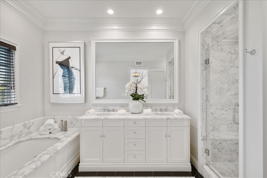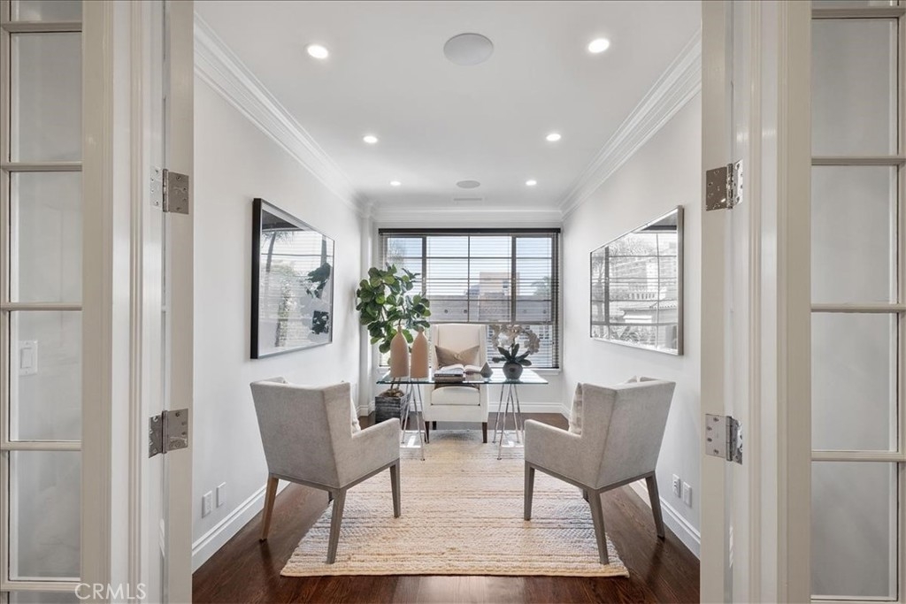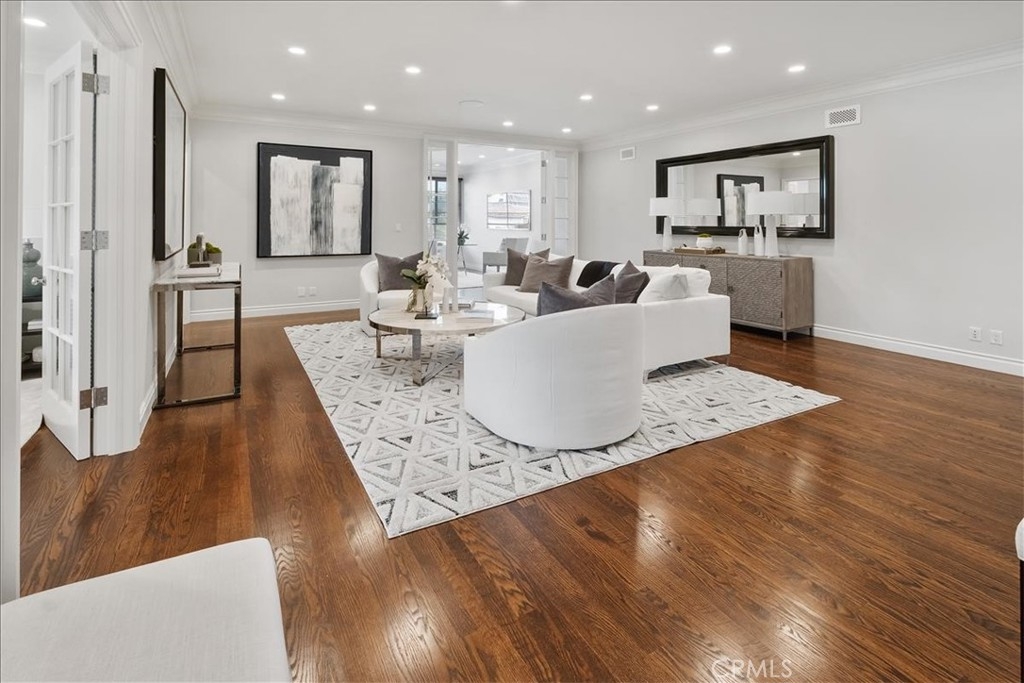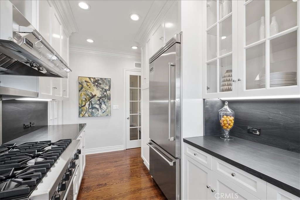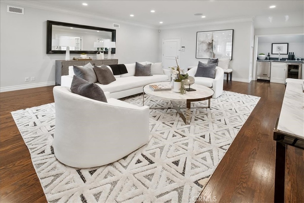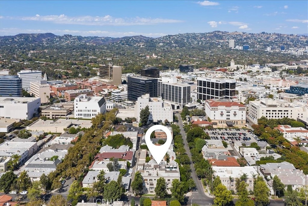 If location is everything in real estate, there is no better location than where this exquisite two bedroom, two bath Penthouse in the heart of Beverly Hills is located. It is the vision of the renowned architect Peter Choate and interior designer Waldo Fernandez and boasts its own private rooftop terrace which is perfect for entertaining providing a breathtaking view of prime Beverly Hills and downtown LA. This grand and sophisticated Manhattan style luxury condominium is a block south of Saks and only two blocks from Rodeo surrounded by some of the finest restaurants and best shopping in Beverly Hills. The fully remodeled corner unit features top of the line Viking stainless appliances with six-burner gas stove, beautiful Black Sands quartzite kitchen countertops, wet bar with a textured Fusion Blue quartzite countertop with built-in wine refrigerator, and icemaker. It features Calacatta marble in the bathrooms and all new hardware with gorgeous finishings throughout. The unit has new hardwood floors, high ceilings with crown molding, generous wall space for art, and exceptional closet space ... plus a formal dining room and private office. The condominium has a dedicated laundry area with side by side Miele washer and dryer, central air and heating and a custom hardwired alarm system. The unit has a second entry door so you don’t have to bring groceries through the front door. Whereas other buildings in the area have carports in alleys in back, this premium building has gated indoor ground-level parking with space for two cars and ample storage plus state of the art security with a monitor in the unit that allows you to see guests at the front door who you can buzz in. This spectacular condominium, with its location in the heart of Beverly Hills, is completely unique with its view, no other like it, truly one of a kind, and first time on the market since it was purchased by the original owner. The unit recently underwent a complete remodel and has not been occupied since the remodel. This is ultimate living in Beverly Hills, a rare Penthouse with its own private rooftop terrace looking directly into Beverly Hills, a rare gem.