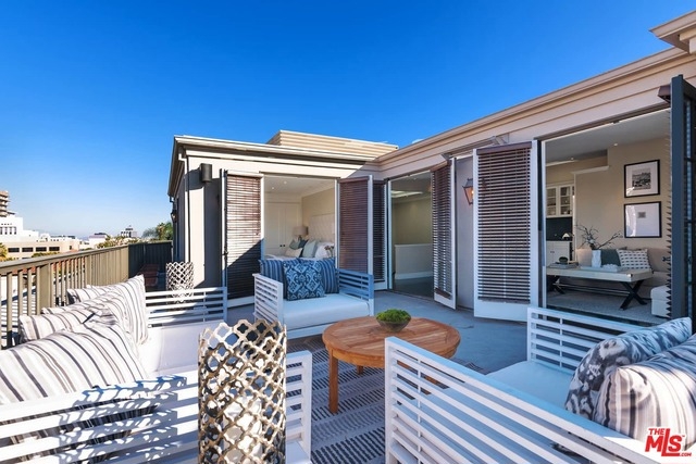 Unlike any other! Hip & Sexy New York style luxury Five Star Penthouse pied-a-terre designed with timeless features, including French doors leading to its' own massive, private rooftop terrace with breathtaking city & mountain views, creating an entertainer's delight of indoor-outdoor living space in the heart of Beverly Hills. Exceptional location to a variety of fine eateries & an abundance of shopping throughout Beverly Hills, including the exclusive Rodeo Drive. Boutique chic style building exquisitely and classically renovated by renowned architect Peter Choate and interior designer to the stars, Waldo Fernandez. Top of the line Viking SS appliances with 6-burner gas stove, hardwood floors, central air/heating. Gated community garage with security cameras. Rare PH offering in this sought after building can now be yours. Location, Location, Location!