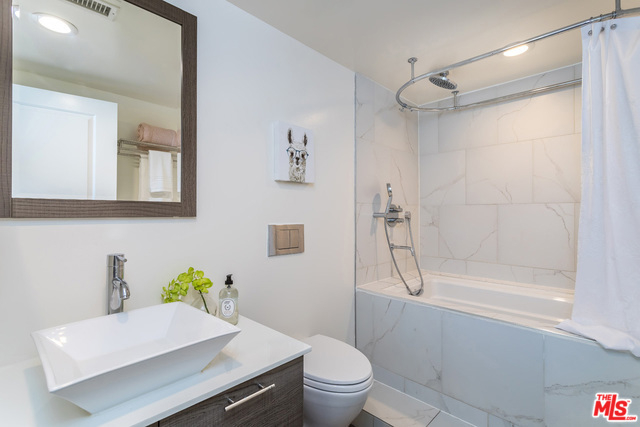 Unique opportunity to own the only 3-bedroom, 3-bath in Durant Towers. Remodeled top floor corner unit with no common walls boasts a spacious 1838 sf of living space. There are two en-suite Masters with City Views and the 3rd bedroom (currently staged as an office) is ideal for the work-at-home professional. Open floor plan features eat-in kitchen with center island, breakfast bar and stainless steel appliances. Generous dining and living areas open onto large balcony. Ample closets throughout provide excellent storage. Relax by the rooftop pool which features a large entertainment deck complete with built-in BBQ'sperfect for al fresco dining and parties. Community laundry on each floor and near to this unit. Two tandem parking spots in gated garage plus storage unit. Located minutes from shopping, dining, schools and entertainment in Beverly Hills and Century City. Ideal for owner-user or investment property.